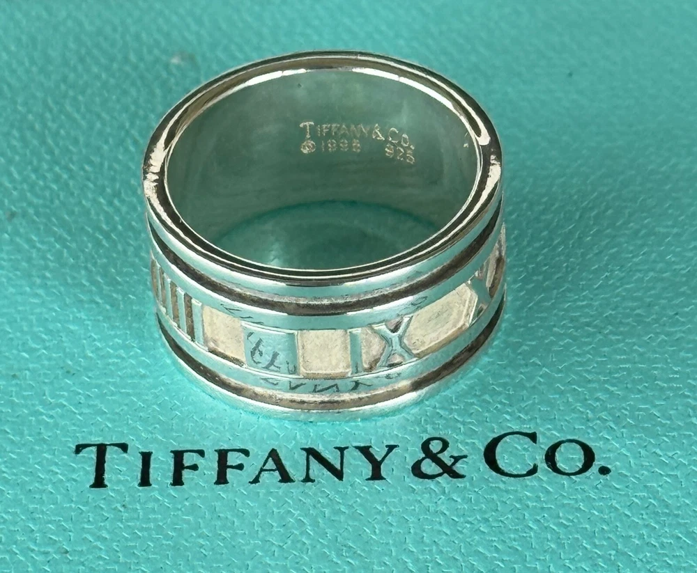 Tiffany & Co Wide Atlas Roman Numeral Ring. Sterling Silver 925. Size 9 1/4 US. No box or pouch. All Our Tiffany & Co. Items are Authentic.