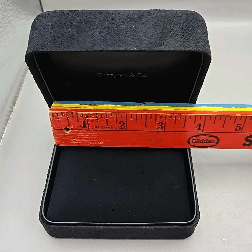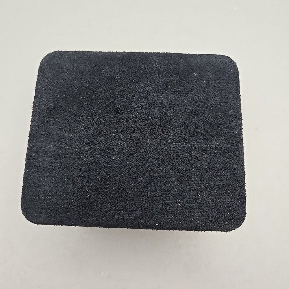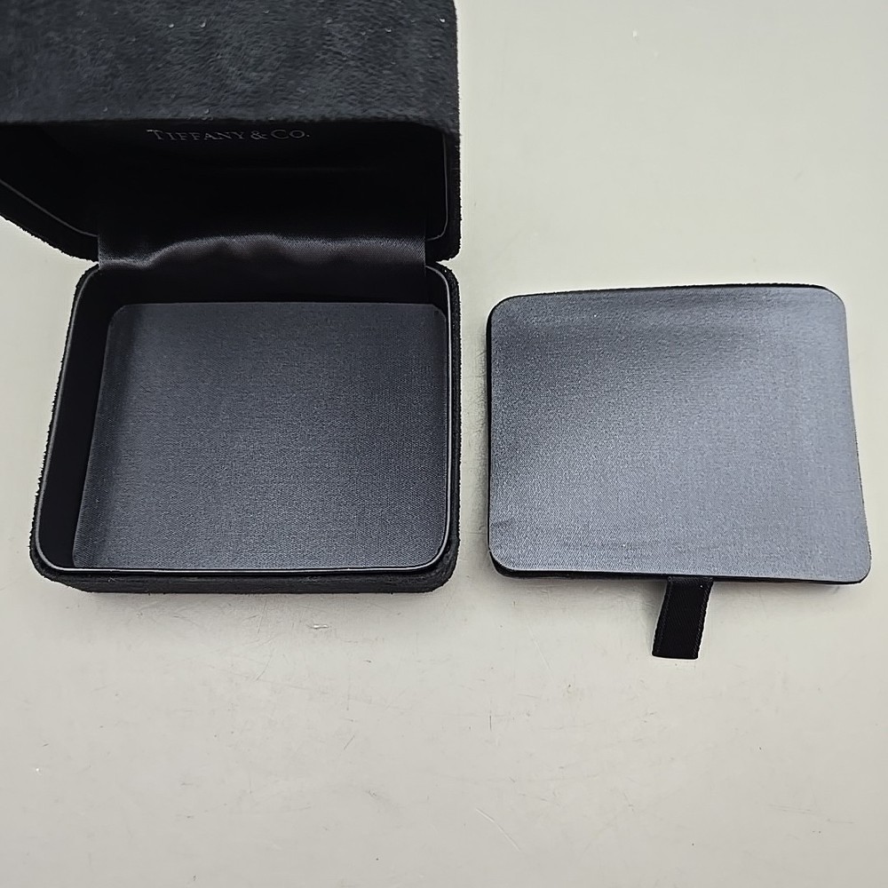 Tiffany & Co. Black Suede Jewelry Box Removable Velvet Pillow Inside, exterior measures approximately 4"x3.25", interior measures approximately 3.75"x3"