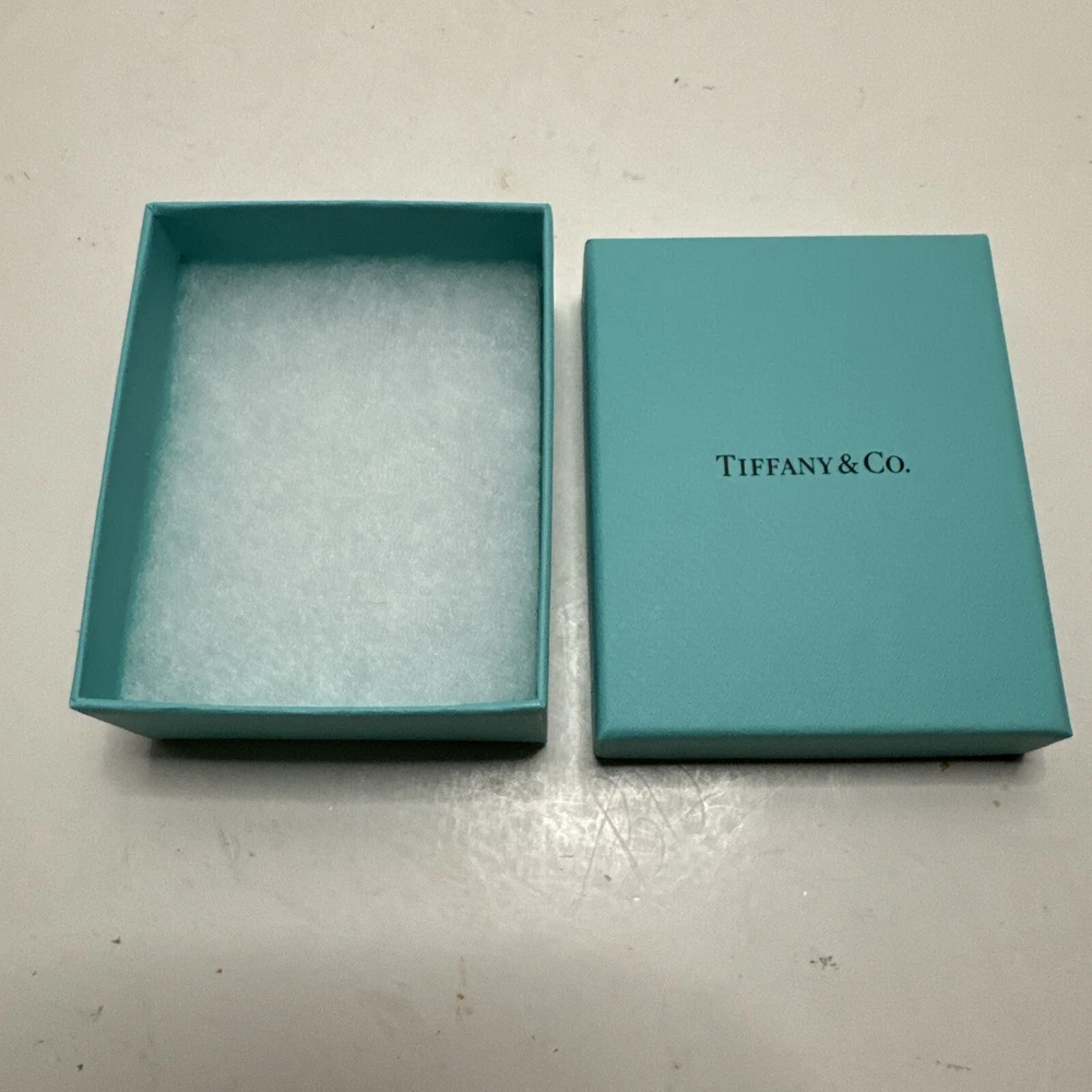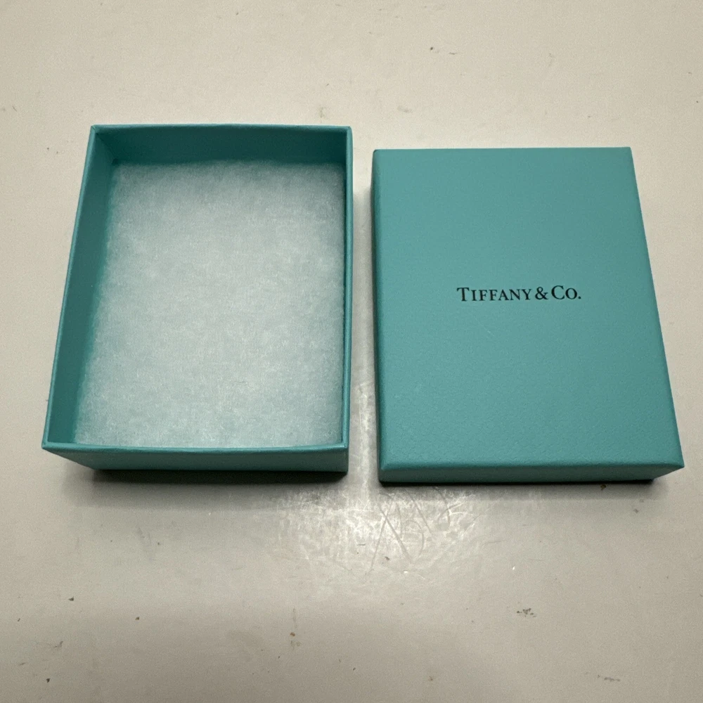 This Tiffany & Co. gift box is perfect for storing your precious jewelry pieces. With its rectangular shape and beautiful blue color, this box is a great addition to any dresser or vanity. Measuring 3.75 inches in length, 3 inches in width, and 1.25 inches in depth, it is suitable for storing various jewelry items such as necklaces, bracelets, cufflinks, and earrings. The unlined interior of the box ensures that your jewelry stays scratch-free and organized. This item comes with both a jewelry box and a gift box, making it an ideal present for a loved one. Although previously used, this vintage-inspired gift box is in excellent condition and sure to impress.