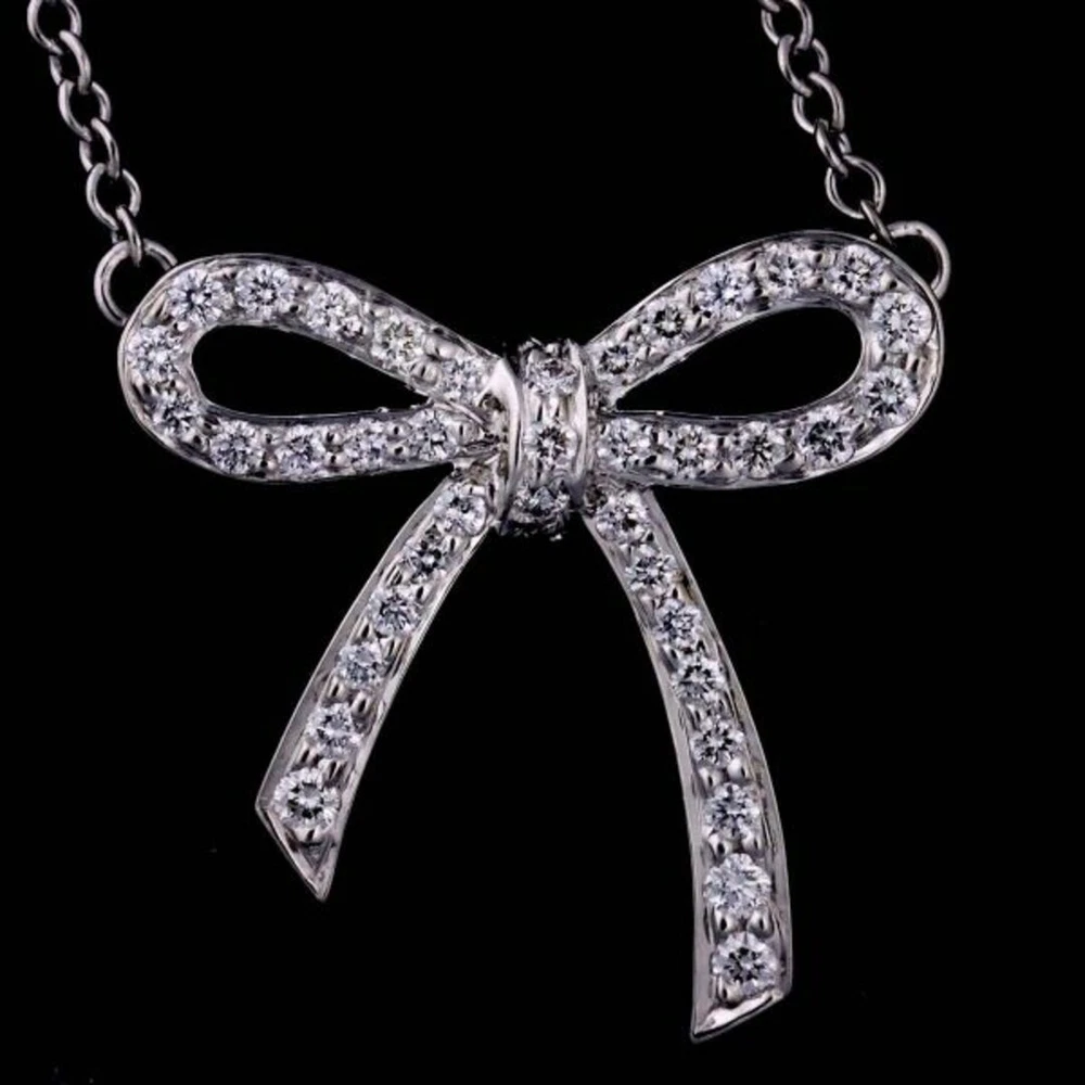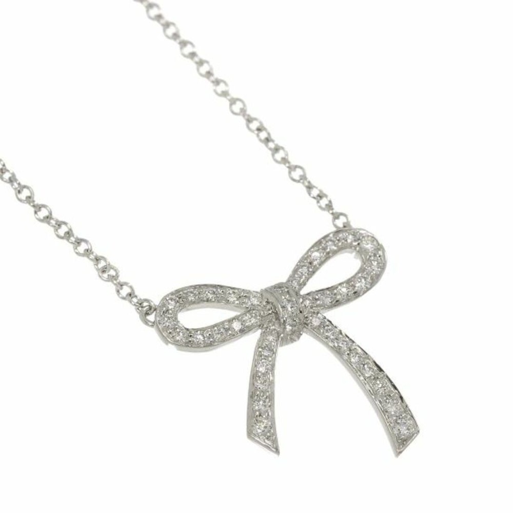 Tiffany Co Bow Diamond Necklace 40cm Platinum Ribbon 90275558