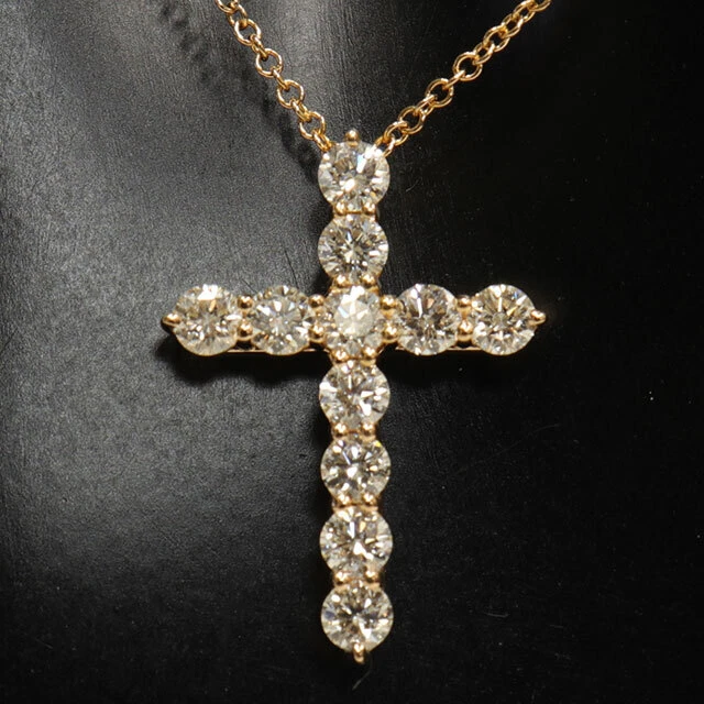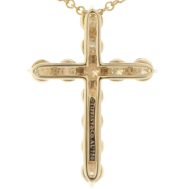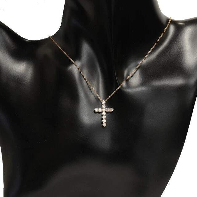 Tiffany & Co. Cross Diamond Necklace Medium K18 PG x 11 Stone Pendant 152155