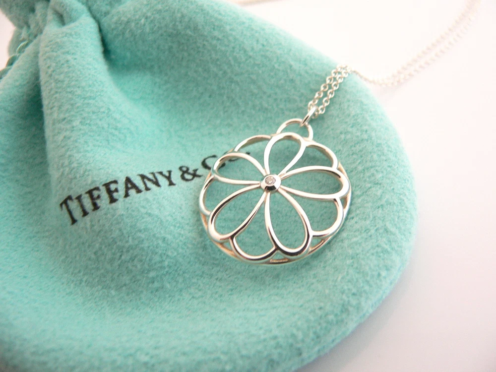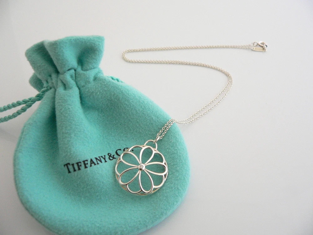 Overview: Everyone needs a signature Tiffany piece! Here is the perfect one just for you. Offered for sale is a wonderful Tiffany & Co. Sterling Silver Garden Flower Diamond necklace. The piece is crafted from bright Tiffany silver, yet retains its feminine and delicate feel. Hanging from its sterling silver Tiffany curb chain is very pretty Flower pendant, accented with a bright sparkling diamond - Just gorgeous! It is a wonderful necklace that fits a lifestyle on the go, and can be worn to almost any occasion. The piece is simple, elegant, and classic all rolled into one. Imagine it with your professional office attire ... Now imagine it with jeans or weekend wear ... Perfect! The necklace is very comfortable to wear, and is in excellent condition. It is one of THE classic Tiffany piece to start or add to your collection. As always, the item is fully hallmarked and guaranteed to be 100% authentic. Wonderful present for yourself or anyone you love! Will surely delight! It will come with its Tiffany pouch as shown! Perfect and ready for gifting! Particulars: Size & Measurements: The necklace is approx. 16 inches from end to end. The Diamond Flower charm is a tad over 0.8 inches in diameter. Metal & Hallmarks: Tiffany & Co. / 925 Solid 925 sterling silver Please check out my other unique and interesting Tiffany items on sale.