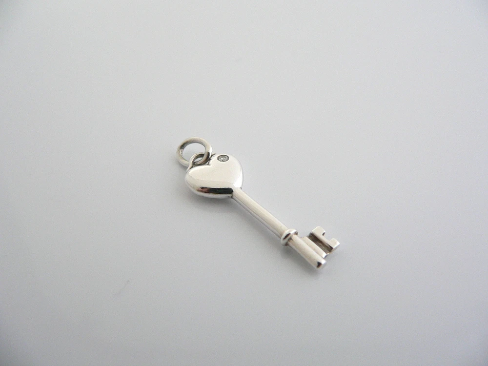 Overview: Offered for sale is a fantastic and very pretty Tiffany and Co. Sterling Silver Diamond Heart Key charm / pendant. Wonderful charm that fits a lifestyle on the go -- the piece can be worn to almost any occasion! Just add the Diamond Heart Key charm to an existing chain / silk cord / or bracelet and voila! Instant Tiffany style and elegance! :) It is classic Tiffany and yet looks extremely elegant. Perfect way to say "Here's the key to my heart :)" without ever having to say a word - believe me, she will know! :) Imagine the piece with your professional office attire ... Now imagine it with jeans or weekend wear ... Perfect in every way! The item is very comfortable to wear, and is in very good condition. A classic Tiffany piece to start or add to your collection. The pendant and is fully hallmarked and guaranteed to be 100% authentic. Wonderful present for yourself or anyone you love! Will surely delight! Particulars: Size & Measurements: The key pendant is 1.25 inches (including bail). Metal & Hallmarks: Tiffany & Co. / 925 Solid 925 sterling silver Please check out my other unique and interesting Tiffany items on sale.
