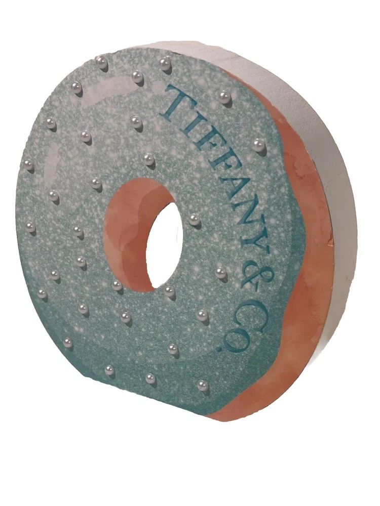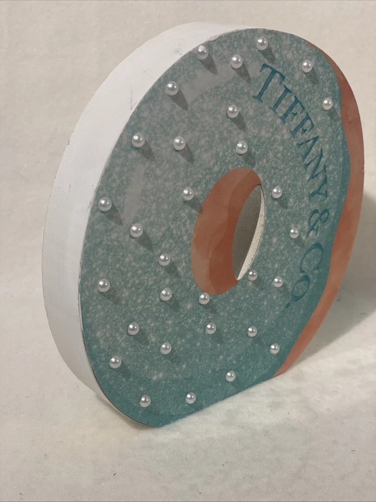 Personalize: No Size: Medium Item Width: 1 In Item Height: 6 in Material: Wood Brand: Tiffany & Co. Mounting: Free Standing Item Length: 6.5 In Subject: Tiffany & Co. Donut Pears Finish: Glossy Print & Flat Paint Item Weight: 10 Oz. Care Instructions: Dust, Clean with Damp Cloth Handmade: No gtin13: Does not apply Color: Robins Egg Blue Faux Pearls Country/Region of Manufacture: Unknown Battery Type: N/A Customized: No Vintage: No Orientation: Vertical Engraved: No Theme: Art, Art Donut Pearls Model: N/A Features: Indoor, Textured, Decorative, 3D Effect UPC: Does not apply Character Family: Tiffany & Co. Art Decor Personalization Instructions: N/A Type: Feminine Art Decor Character: Donut w Pearls Pattern: Abstract MPN: N/A Department: Adults, Teens Additional Parts Required: No Shape: Round Style: Abstract Room: Bedroom, Any Room, Indoor, Guestroom, Office, Lounge, Living Room, Closet, Bathroom