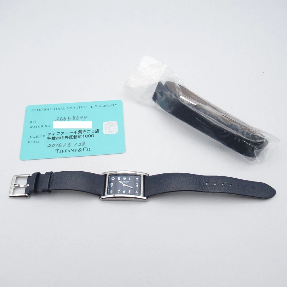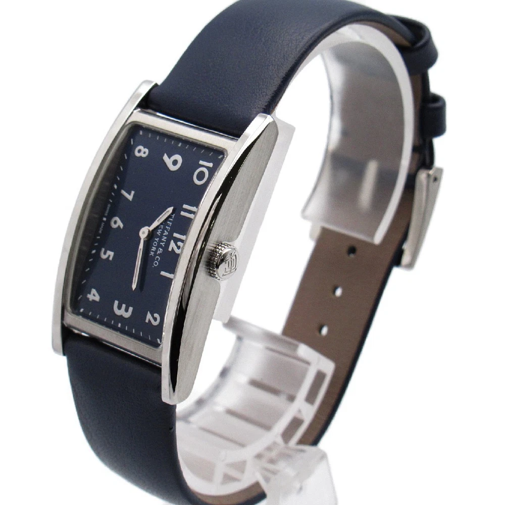 Tiffany Co. Eastwest TIFFANY CO Stainless Steel Watch SS Leather Used Wom