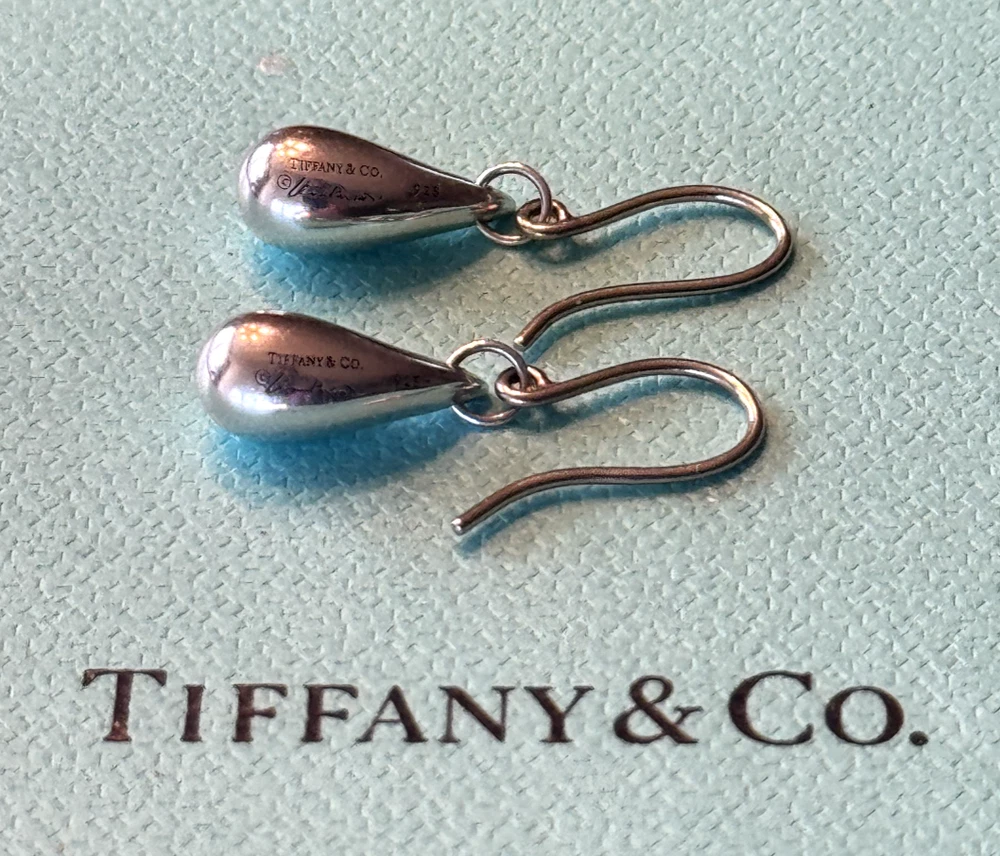 Tiffany & Co Elsa Peretti Earrings Dangle Teardrop Earwires Sterling Silver 925
