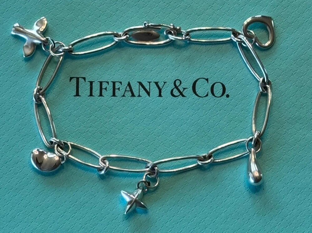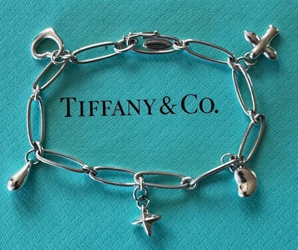 Tiffany & Co. Elsa Peretti Paperclip Charm Bracelet Bracelet Sterling Silver 925. Measures approx. 7 1/2". No box or pouch. All Our Tiffany & Co. Items are Authentic.