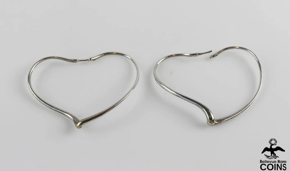 Tiffany & Co Elsa Peretti Sterling Silver Large Open Heart Dangle Earrings w/Box Tiffany & Co Elsa Peretti Sterling Silver Large Open Heart Dangle Earrings w/Box *Tiffany & Company is a worldwide name and elite jewelry company that spans almost 200 years old, with many artist and designer pieces that are sure to stun and captivate. Luxury and style are captured in every piece! *Specifications: Metal: Sterling .925 Silver Weight: 11.8 grams Length x Width: 52mm x 62mm Includes Box & Pouch *Please SEE PHOTOS for condition. If you should have any questions or concerns, please feel free to message us Monday - Friday 9:00am - 5:00pm via ebay’s “Ask question” button below. We add hundreds of new coin and bullion listings weekly. We encourage you to check out our other listings and our eBay auctions! Click Here To See All Bellevue Rare Coins Gold Bullion L istings Shipping & Returns: $4.00 USPS Ground Advantage shipping within the United States, unless otherwise noted in listing. Shipping and Handling: Domestic Shipments - Bellevue Rare Coins provides $4.00 United States Postal Service (USPS) Ground Advantage shipping with tracking for all shipments within the United States, unless otherwise specified. International Shipments - All International orders are shipped via eBay's International shipping program. International Shipping and handling fees will be determined at check out. Please contact us for shipment fee estimates. Combined Shipping - Bellevue Rare Coins offers combined shipping for domestic buyers who have won multiple auctions. We will send out updated invoices with discounted shipping costs on Monday mornings. Please wait until you receive the updated invoice from us to make your payment. We do not offer combined shipping for International Buyers. Return Policy - Bellevue Rare Coins has a 30-calendar day return policy. All returns must be shipped within 30 calendar days of receiving the product. All returned items must be in their original packaging. All return requests must be made within 30 calendar days of customer receiving the merchandise. When returning merchandise, please include the item number, as this will expedite the refund process. Bullion Returns - Customer may (at Bellevue Rare Coins' discretion) be required to pay for any market loss on their returns. Any market gain on refunds shall remain the property of Bellevue Rare Coins. Listing Information: Product Photography - Bellevue Rare Coins does not use stock photos. Items in our listings have been photographed by our team in-house, so you can trust that you're making an informed purchase, ensuring transparency and authenticity. Messages - We greatly value your messages and are committed to responding to your questions and inquiries as promptly as we can. Nevertheless, please understand that immediate responses may not always be possible. Kindly note that we are unable to respond to messages on weekends, but we assure you that your inquiries are important to us, and we will get back to you during our working hours as soon as possible. About Bellevue Rare Coins Bellevue Rare Coins is a family-owned and operated business who have been proudly offering their services since 1979. We are the leading rare coin and currency dealer in the Greater Seattle Area who also specialize in jewelry and estate items. We are focused on delivering a simpler experience to our customers. Providing a reputation that dramatically affects our consumers in a positive way. We ensure that our clients always feel welcome and valued.