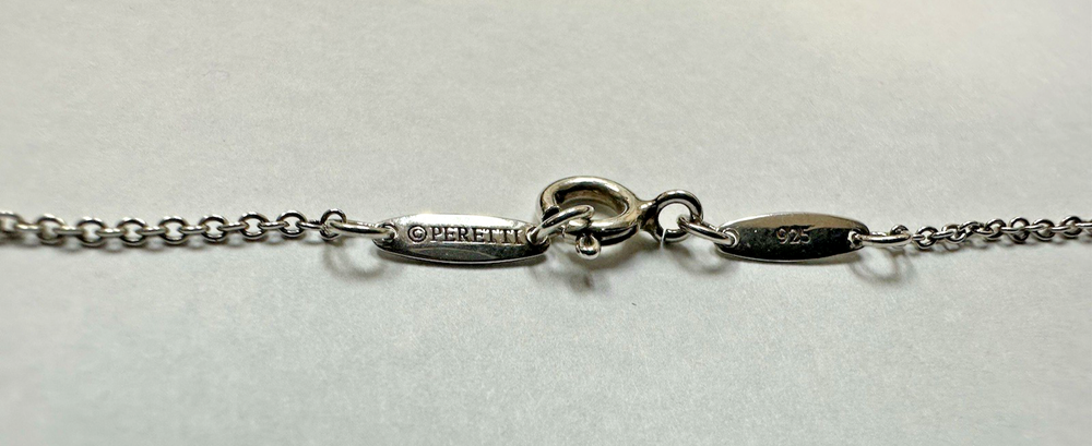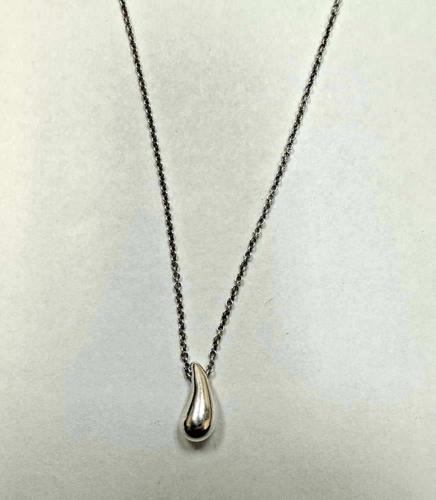 Crafted by the iconic Tiffany & Co., this Elsa Peretti Tear Drop Necklace is a timeless addition to any jewelry collection. The piece features a 12mm tear drop pendant, beautifully rendered in sterling silver 925, and hangs gracefully on a 16-inch chain. The necklace is signed by Tiffany & Co., ensuring its authenticity and renowned craftsmanship. The tear drop shape exudes a classic sophistication, while the metal purity of 925 sterling silver adds a touch of luxury.