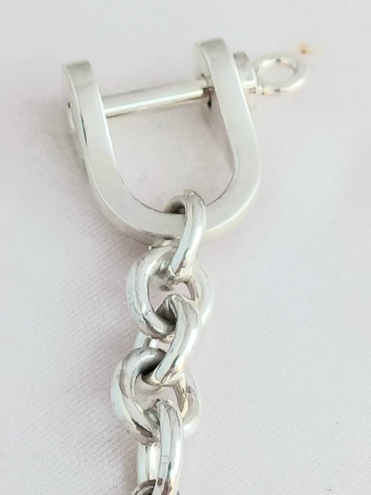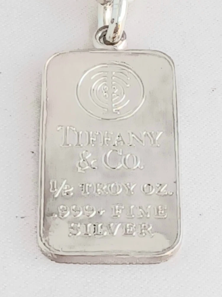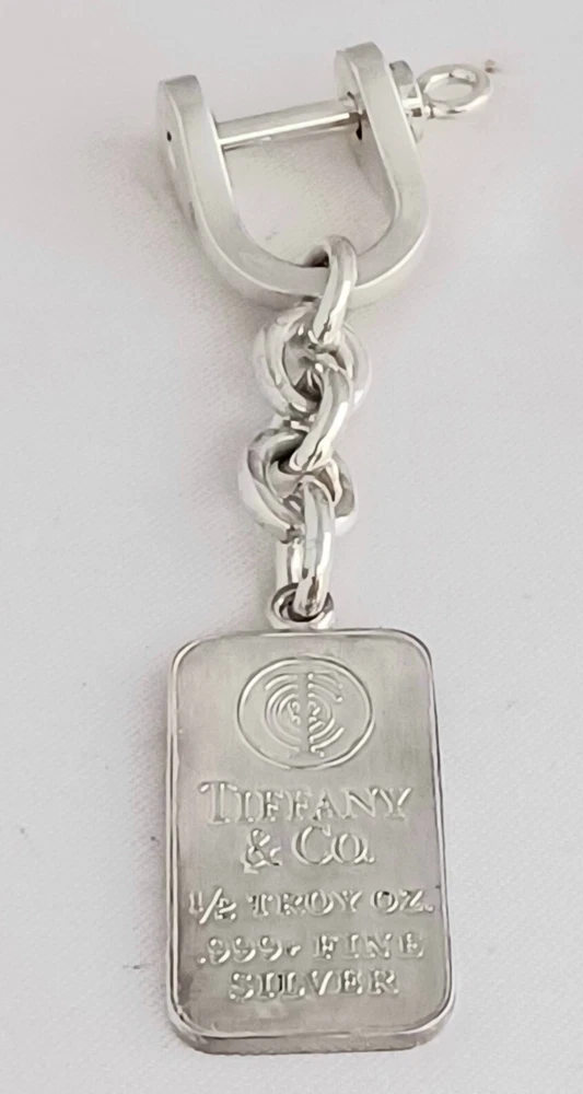 This Tiffany & Co Fine Silver Key Chain is in excellent condition. Another ebayer had stated that they found this piece in a 1985 catalogue which showed a picture of it. This Piece Measures 3 1/2" long and the bar weighs 1/2 troy oz with the whole piece weighing just over 35 grams. This piece is marked Tiffany & Co. 1/2 Troy oz, 999 fine silver. Please see photos. This would make a lovely addition to any sterling collection. This exquisite Tiffany & Co fine silver key chain is a perfect addition to your jewelry collection. Crafted with precision and care, this piece features a beautiful design that is sure to catch everyone's attention. The silver finish gives it a timeless elegance that will never go out of style. Ideal for both casual and formal wear, this key chain is versatile and practical. It is perfect for keeping your keys organized and easily accessible, while also adding a touch of sophistication to your outfit. Whether you're going out for a night on the town or just running errands, this Tiffany & Co fine silver key chain is the perfect accessory to complete your look.