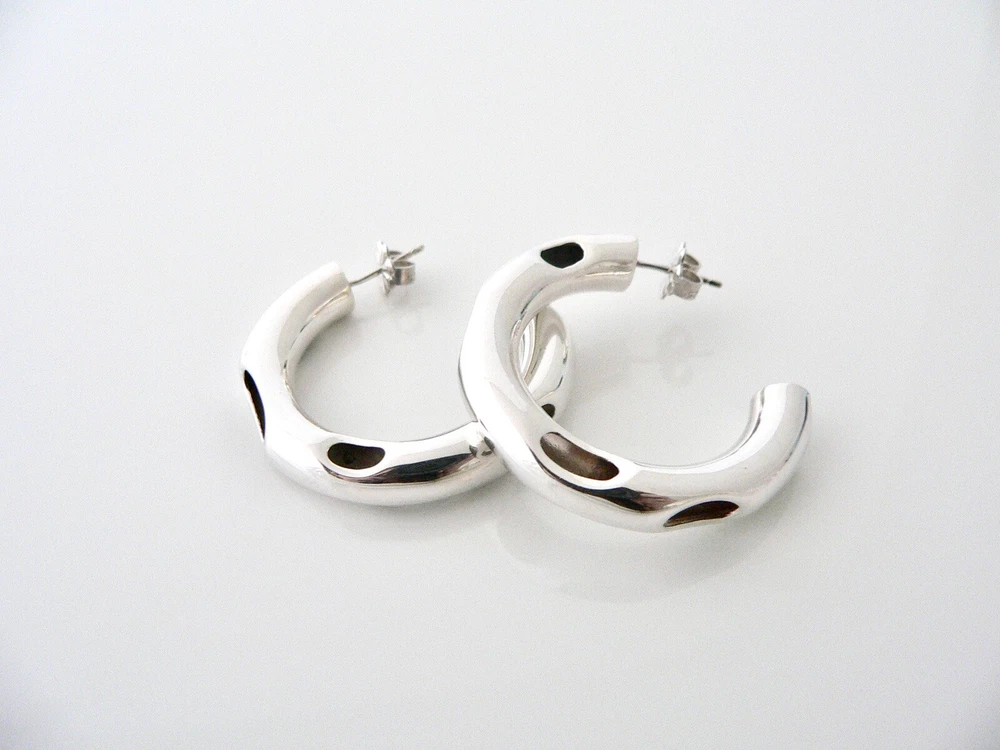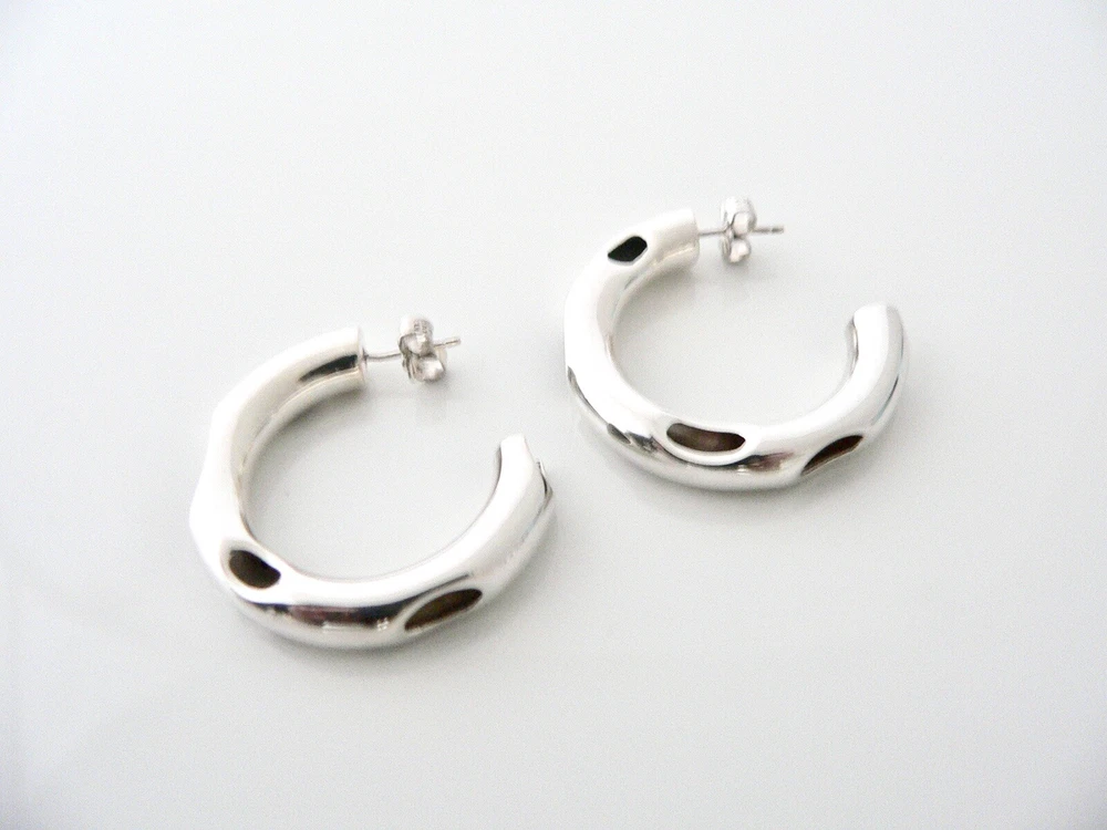 Overview: Time to pull your hair back and show off your awesome Tiffany earrings! Offered for sale is a very rare, gorgeous and wonderful Tiffany and Co. Frank Gehry Sterling Silver Tube Hoop earrings. This piece is crafted from substantial Tiffany sterling silv er and yet maintains a very feminine and super cool and chic feel! Guaranteed to be a conversation starter! It is just like wearing a piece of art work right on your ears - without the extremely high price! Very elegant, chic and comfortable piece! You will feel both sexy and elegant while wearing this piece. Great earrings to wear for a night in town, at a party, or just going to dinner with friends in jeans or a pretty dress. The style is classic Tiffany, making it a piece that you will most certainly use over and over again. A great Tiffany piece to start or add to your collection. No longer in production, it is perfect for the collector! The piece is fully hallmarked and is guaranteed to be 100% authentic. Wonderful present for yourself or anyone you love! Will surely delight! It will come with its Tiffany pouch as shown! Perfect and ready for gifting! Particulars: Size & Measurements: The hoops are 1.25 inches each in diameter (Super cool piece!) Metal & Hallmarks: Tiffany & Co. / Gehry / 925 / Italy Solid 925 sterling silver Please check out my other unique and interesting Tiffany items on sale.
