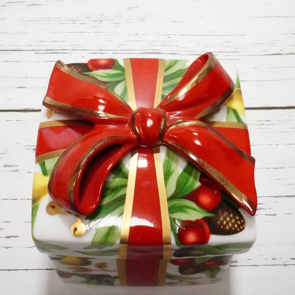 This adorable Tiffany & Co. trinket box is a festive holiday treasure! The classic red ribbon design on porcelain makes it a charming keepsake, perfect for storing small jewelry or holiday trinkets. The used condition is still lovely, and shipping is reliable with tracking—no worries there. A great gift for Tiffany fans or collectors!