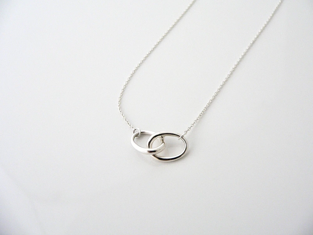 Overview: This necklace is Elsa Peretti's take on the interlocking necklace -- it is a vintage and rare piece that you do not stumble upon very often so get it while you can! Offered for sale is a gorgeous Tiffany & Co. Peretti Silver Interlocking Ovals necklace. The piece is crafted from bright and substantial Tiffany silver. Great and unique way to say "I love you" or "I love me :)!". It is a wonderful necklace that fits a lifestyle on the go -- the necklace can be worn to almost any occasion! It is simple, elegant, and classic all rolled into one necklace. Imagine the piece with your professional office attire ... Now imagine it with jeans or weekend wear ... Perfect! It will be the only necklace you need when traveling as it is super versatile! The item is very comfortable to wear, and is in excellent condition. No longer in production, it is also perfect for the collector. It is a classic Tiffany piece to start or add to your collection. The necklace is fully hallmarked and guaranteed to be 100% authentic. Wonderful present for yourself or anyone you love! Will surely delight! Particulars: Size & Measurements: The chain is 16 inches from end to end. Metal & Hallmarks: Tiffany & Co. / Peretti / 925 Solid 925 sterling silver Please check out my other unique and interesting Tiffany items on sale.