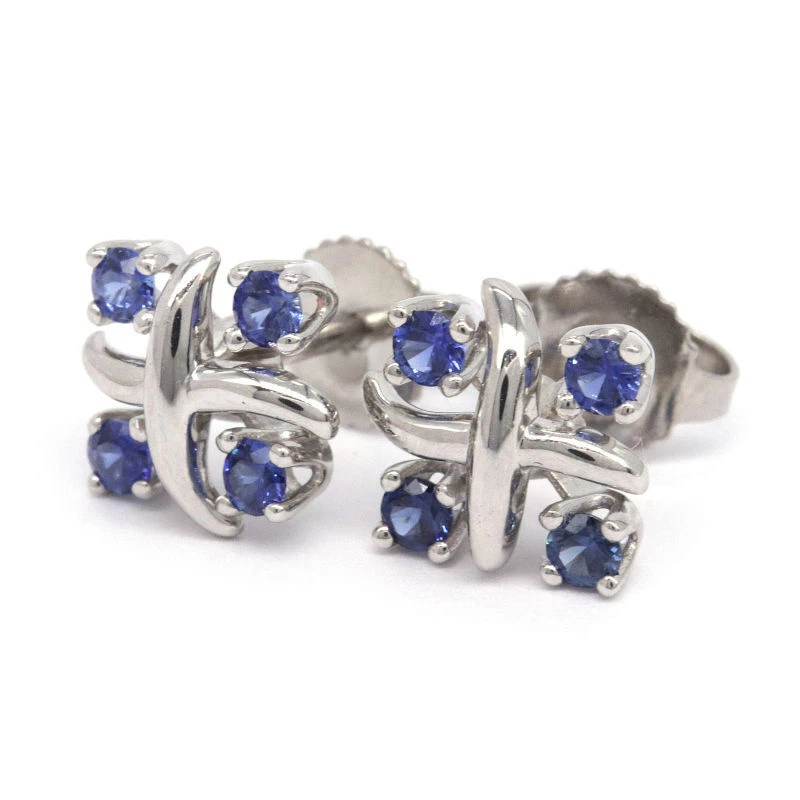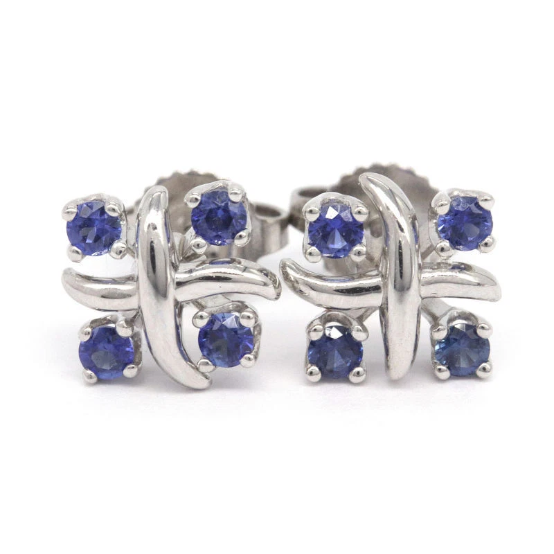 Tiffany & Co. Jean Schlumberger Earrings Pt950 Sapphire Studs Polished Blue 4038