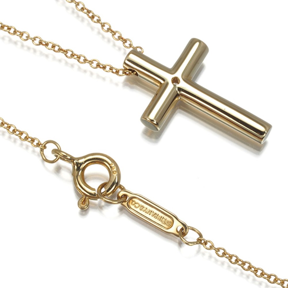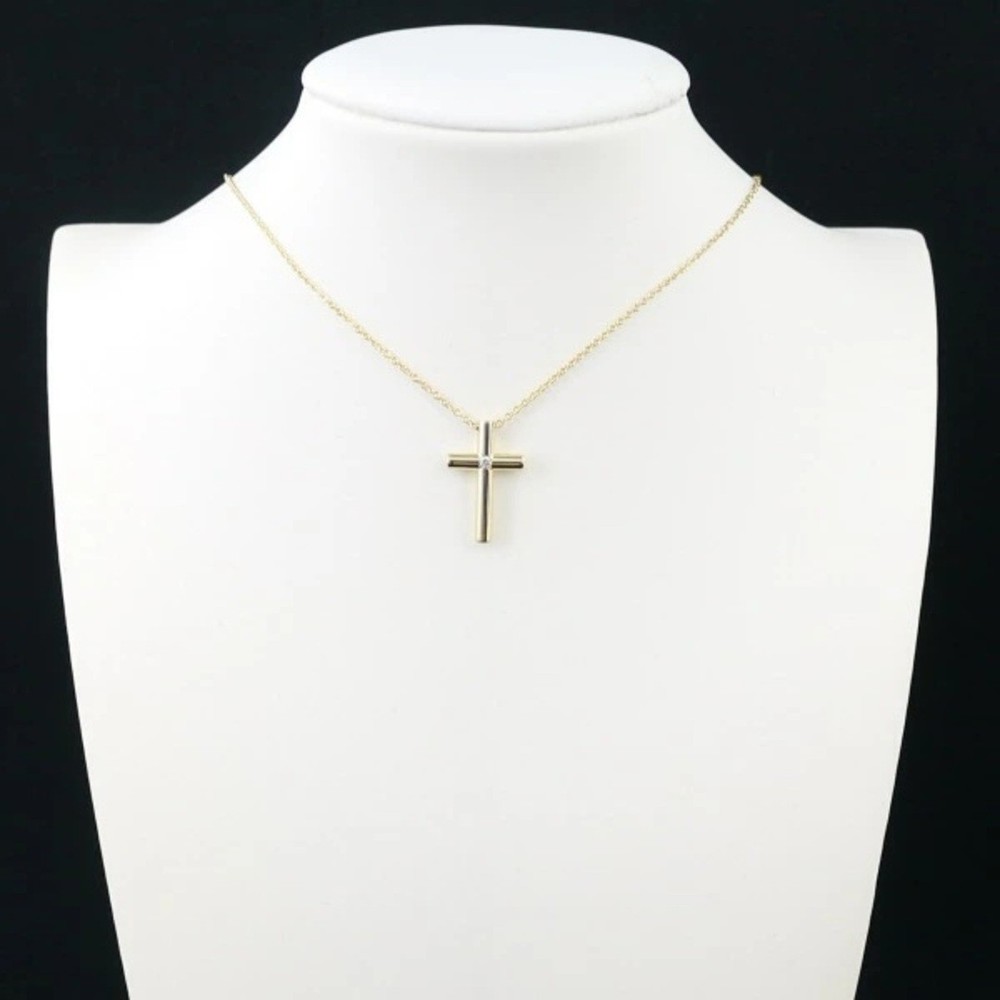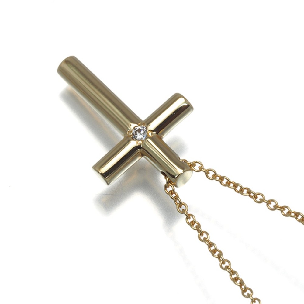 Tiffany & Co K18YG Diamond Cross Pendant Necklace