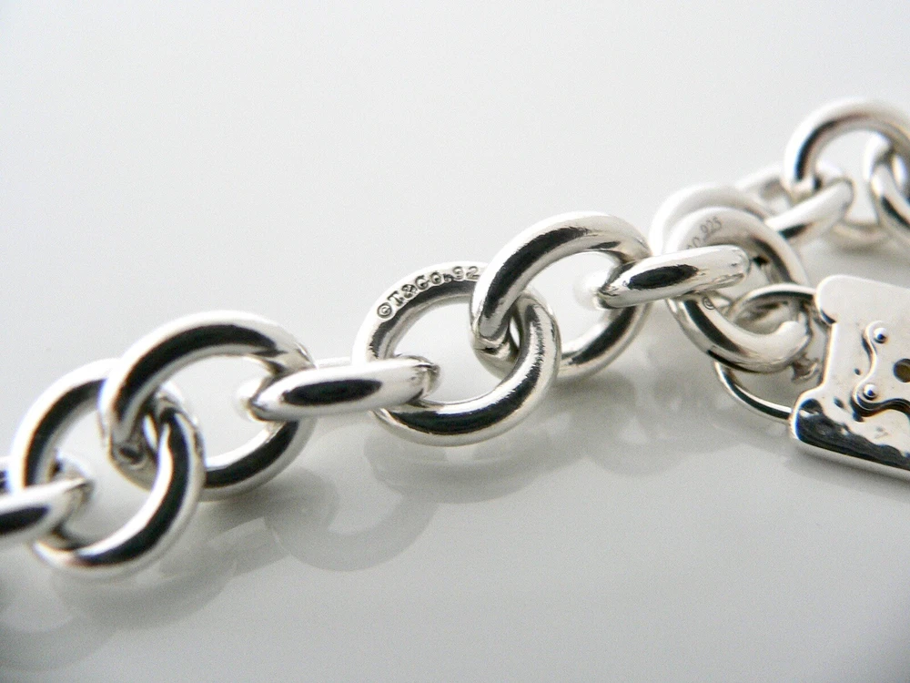 Overview: Offered for sale is a wonderful and gorgeous Tiffany & Co. Sterling Silver Keyhole Padlock Bracelet. Definitely a Tiffany piece that you will get your money's value for. It works perfectly with pretty much any attire your put on, AND is a great statement piece. The piece looks fabulous worn alone, but is also a wonderful piece with which to start or add to your Tiffany collection. The Keyhole padlock charm is attached to the bracelet with a removable Circle clasp, so the charm can be very easily used as a necklace pendant too! Very versatile indeed! This piece is simple, elegant, and classic all rolled into one bracelet. Imagine wearing the piece with your office attire... now imagine it with jeans or weekend wear ... Perfect anytime! It is a perfect Tiffany piece to start or add to your collection. As always, the item is hallmarked and guaranteed to be 100% authentic. Wonderful present for yourself or anyone you love! Will surely delight! Particulars: Size & Measurements: The bracelet is approx. 7.25 inches from end to end. Metal & Hallmarks: T & Co . / 925 (on Keyhole charm and middle link of bracelet) T & Co / 925 (on clasp) Solid 925 sterling silver Please check out my other unique and interesting Tiffany items on sale.