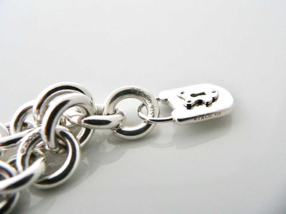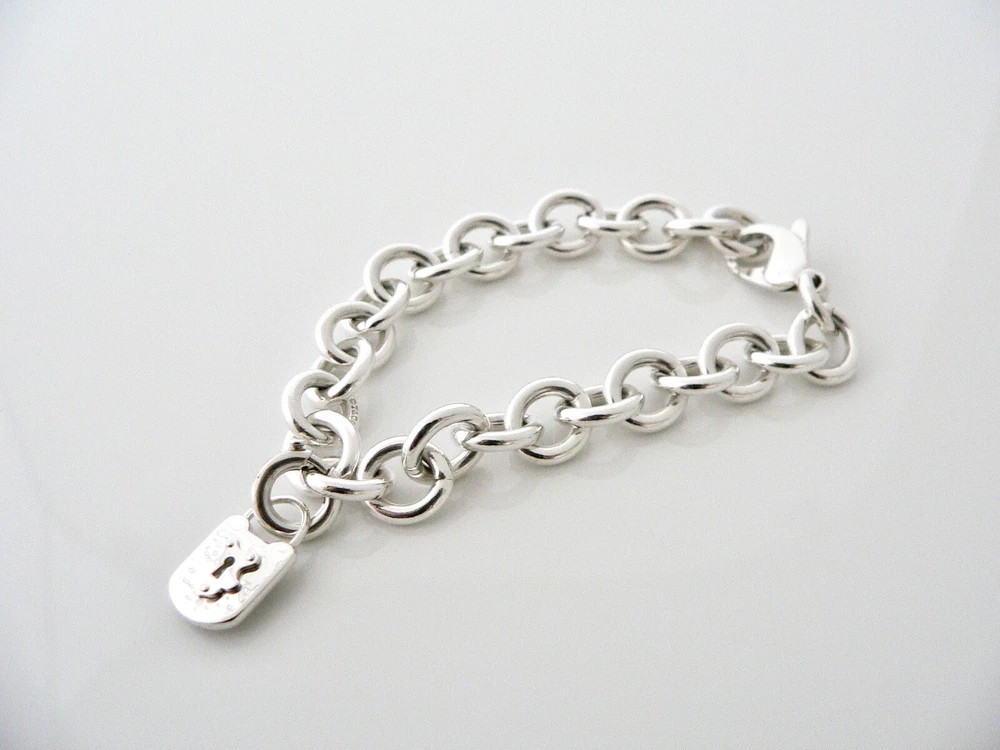 Tiffany & Co Key Keyhole Padlock Bracelet Charm Chain Silver Pouch Clasp 7.25 In