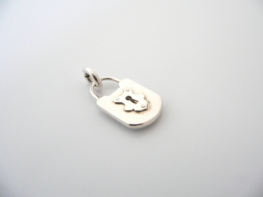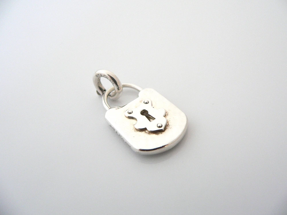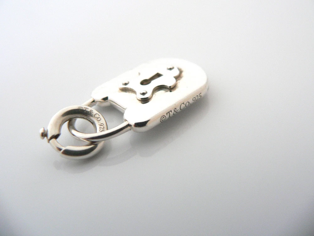 Overview: Offered for sale is a wonderful and super versatile Tiffany and Co. Silver Large Rectangle Key Hole / Locks charm. Because the charm comes with its Tiffany & Co Silver Clasp, it is very easy to attach the charm to a necklace or bracelet - and you have just the right amount of Tiffany touch! The piece is crafted from bright and substantial Tiffany silver, yet retains its feminine and delicate feel. It is super pretty, elegant, and classic all rolled into one piece. Imagine the piece with your professional office attire ... Now imagine it with jeans or weekend wear ... Perfect! The item is very comfortable to wear, and is in very good condition. It is THE classic Tiffany piece to start or add to your collection. As always, the item is fully hallmarked and guaranteed to be 100% authentic. Wonderful present for yourself or anyone you love! Will surely delight! Particulars: The super pretty Locks charm is approx 1.3 inches long (including the clasp). Metal & Hallmarks: T & Co. / 925 (on Locks Charm) T & Co. / 925 (on Clasp) Solid 925 sterling silver Please check out my other unique and interesting Tiffany items on sale.