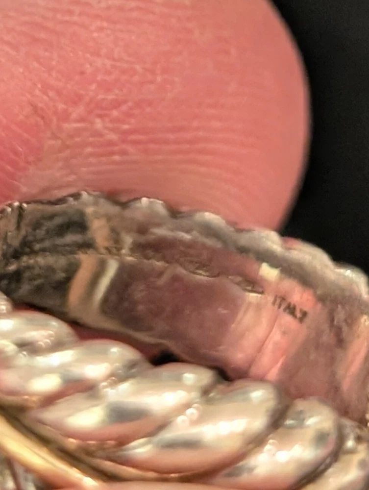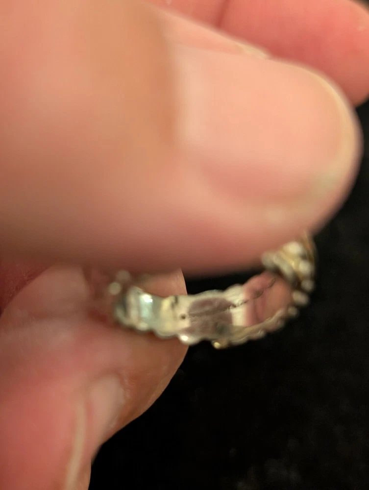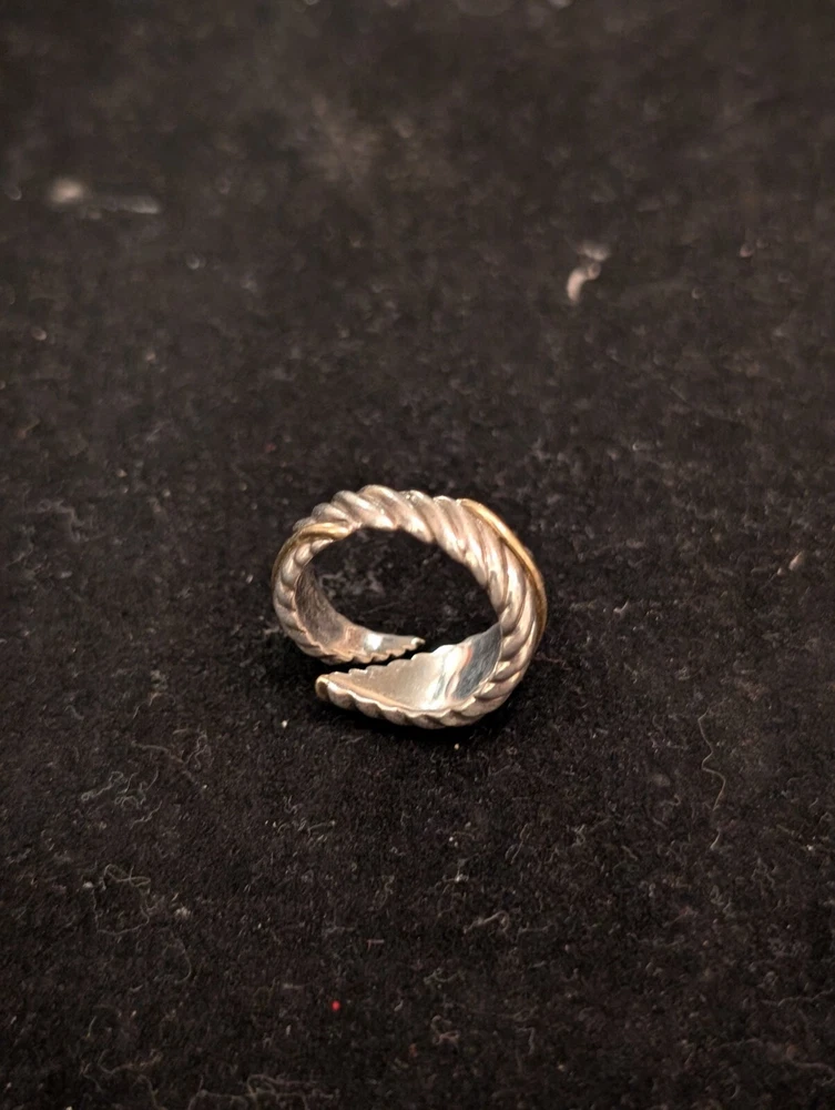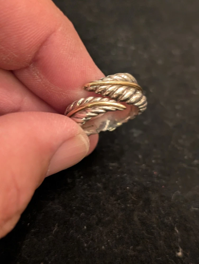Tiffany & Co Leaf Feather Bypass Ring Sterling & 18k Gold Size 5.5 Damaged The ring has a crack in the band where someone tried to adjust the size without taking it to a professional. See pictures. No box or bag included.