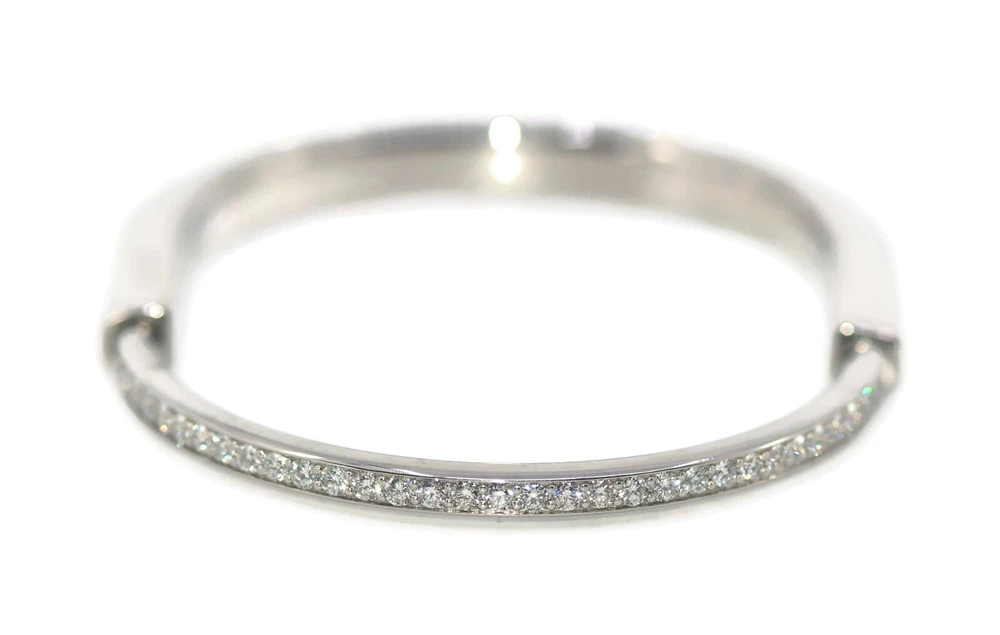 TIFFANY & CO LOCK DIAMOND 18K WHITE GOLD BRACELET SIZE:LARGE WIDTH:6MM WEIGHT:37 GRAMS SKU:11-24/3 COMES WITH PURCHASE RECEIPT 100% AUTHENTIC WITH BOX