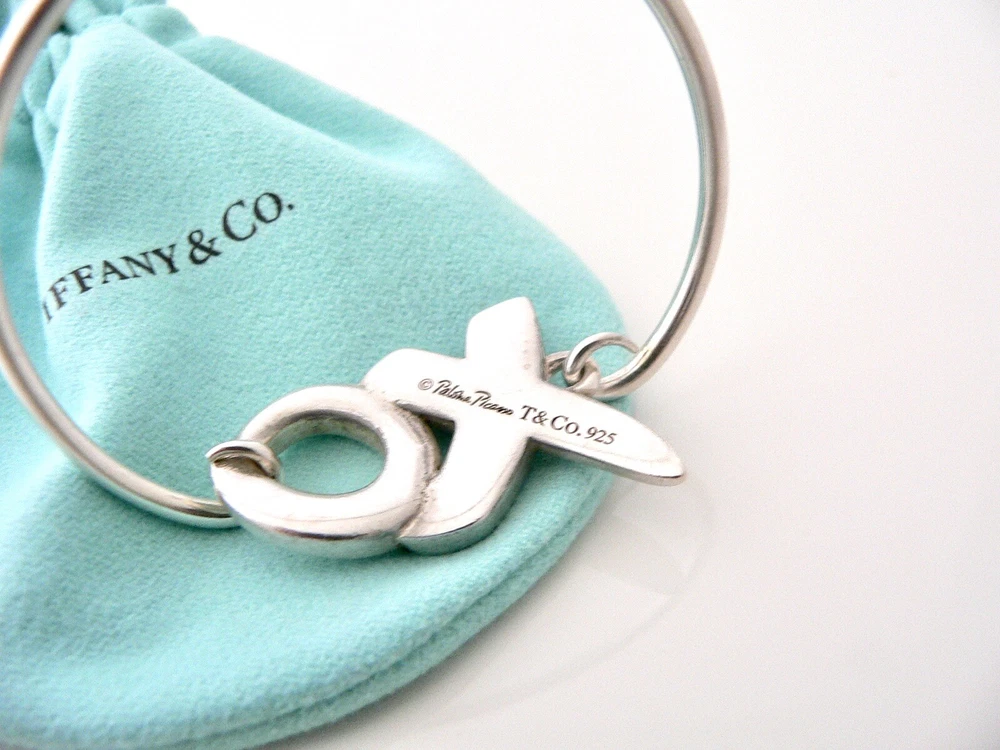 Overview: Offered for sale is a wonderful and gorgeous Tiffany & Co. Sterling Silver XO Bangle. Definitely a Tiffany piece that you will get your money's value for. It works perfectly with pretty much any attire your put on, AND is a great statement piece. The piece looks fabulous worn alone, but is also a wonderful piece with which to start or add to your Tiffany collection. This piece is simple, elegant, and classic all rolled into one bracelet. Imagine wearing the piece with your office attire... now imagine it with jeans or weekend wear ... Perfect anytime! It is a perfect Tiffany piece to start or add to your collection. As always, the item is hallmarked and guaranteed to be 100% authentic. Comes with its Tiffany pouch as shown! Wonderful present for yourself or anyone you love! Will surely delight! Particulars: Size & Measurements: The bracelet is approx. 2.1 inches in diameter. Metal & Hallmarks: T & Co / Paloma Picasso / 925 Solid 925 sterling silver Please check out my other unique and interesting Tiffany items on sale.