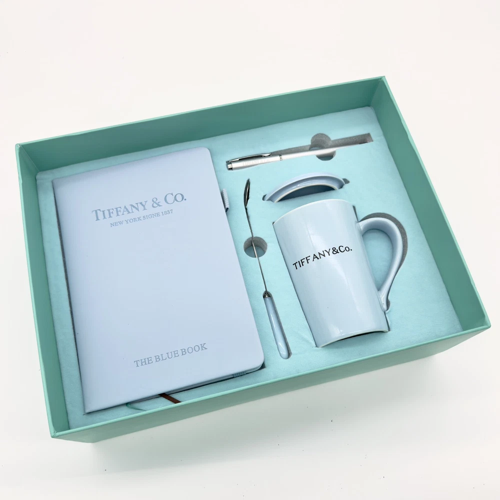 Immerse yourself in the elegance of Tiffany & Co with this Luxury Tea Cup and Journal Gift Set, a thoughtfully curated collection that combines practicality and sophistication. Perfect as a gift or a personal indulgence, this set celebrates the iconic Tiffany Blue in every detail. What’s Included: 1. Tiffany & Co Ceramic Tea Cup: A stunning Tiffany Blue ceramic tea cup with a matching glass lid to keep your beverage warm and a stainless steel spoon for the perfect stir. 2. Tiffany Blue Journal (The Blue Book): A high-quality hardcover journal embossed with “Tiffany & Co.” Perfect for journaling, planning, or taking notes with two built-in ribbon bookmarks for easy organization. 3. Signature Tiffany Pen: A sleek, polished silver ballpoint pen engraved with “Tiffany & Co.,” ensuring a smooth and elegant writing experience. Key Features: • Elegant Tiffany Design: Every piece showcases the iconic Tiffany Blue, delivering unmatched luxury and style. • Gift-Ready Presentation: Packaged in a signature Tiffany Blue box, this set is ideal for birthdays, holidays, or corporate gifting. • Premium Materials: Durable ceramic tea cup, high-quality metal pen, and luxurious journal are made to last. Dimensions & Care: • Tea Cup Capacity: 12 oz (approximately). • Journal Size: A5 (5.8 x 8.3 inches), perfect for portability and daily use. • Care Instructions: Hand wash the tea cup and glass lid for long-lasting use. Celebrate life’s special moments or enhance your daily routine with the elegance of Tiffany & Co. This set is perfect for tea lovers, writers, or anyone who appreciates timeless luxury. Order yours today!
