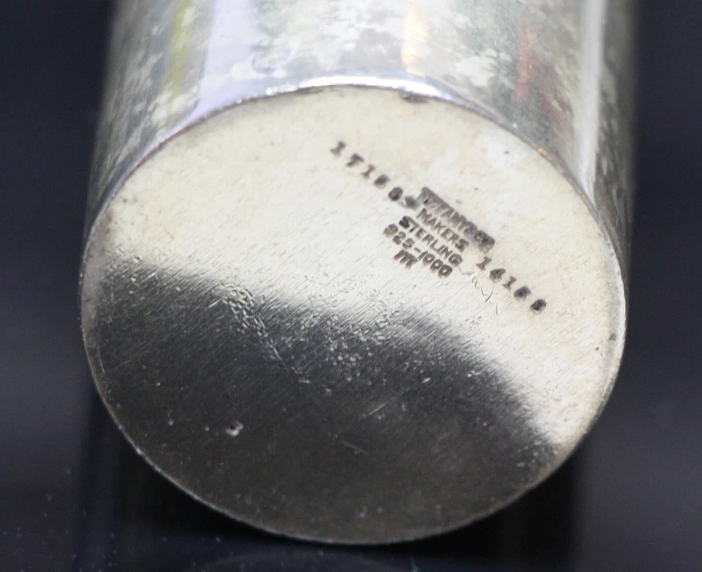 Tiffany & Co Makers Sterling Powder Container / Shaker. This measures 4 1/2" tall, 1 7/8" across. Dent on side, very hard to picture. The bottom is stamped Tiffany & co. Makers Sterling 925 1000 17158 14158 Shipped with USPS Priority Mail. Shipping will be $10.