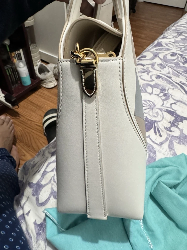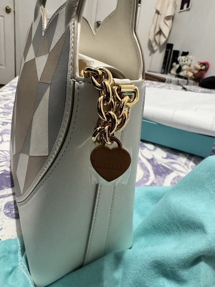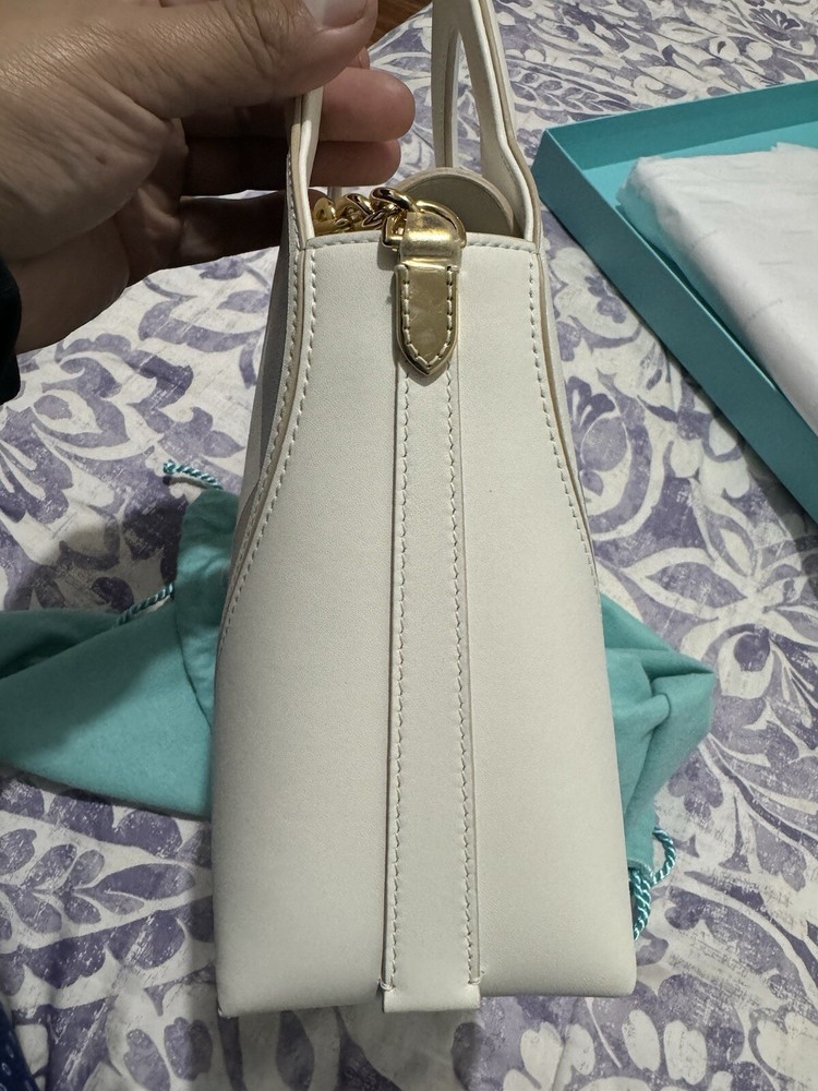 The Tiffany & Co. Heart Mini Small Tote is a stylish handbag designed for women. Crafted from white leather, this tote features a charming heart design, making it a chic accessory for any outfit. The bag comes with a dust bag to keep it protected when not in use, ensuring it stays in brand new condition. The small size of this tote makes it perfect for carrying essentials while on the go, making it a practical and fashionable choice for any woman's wardrobe. Comes with its original dustbag and receipt as well. If you have any questions, feel free to ask.