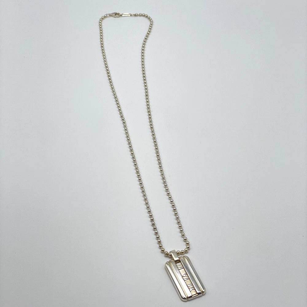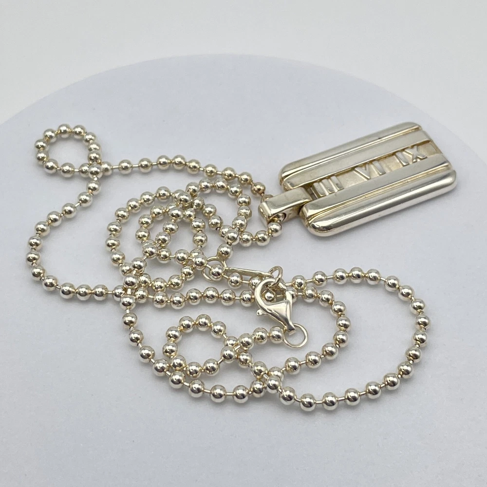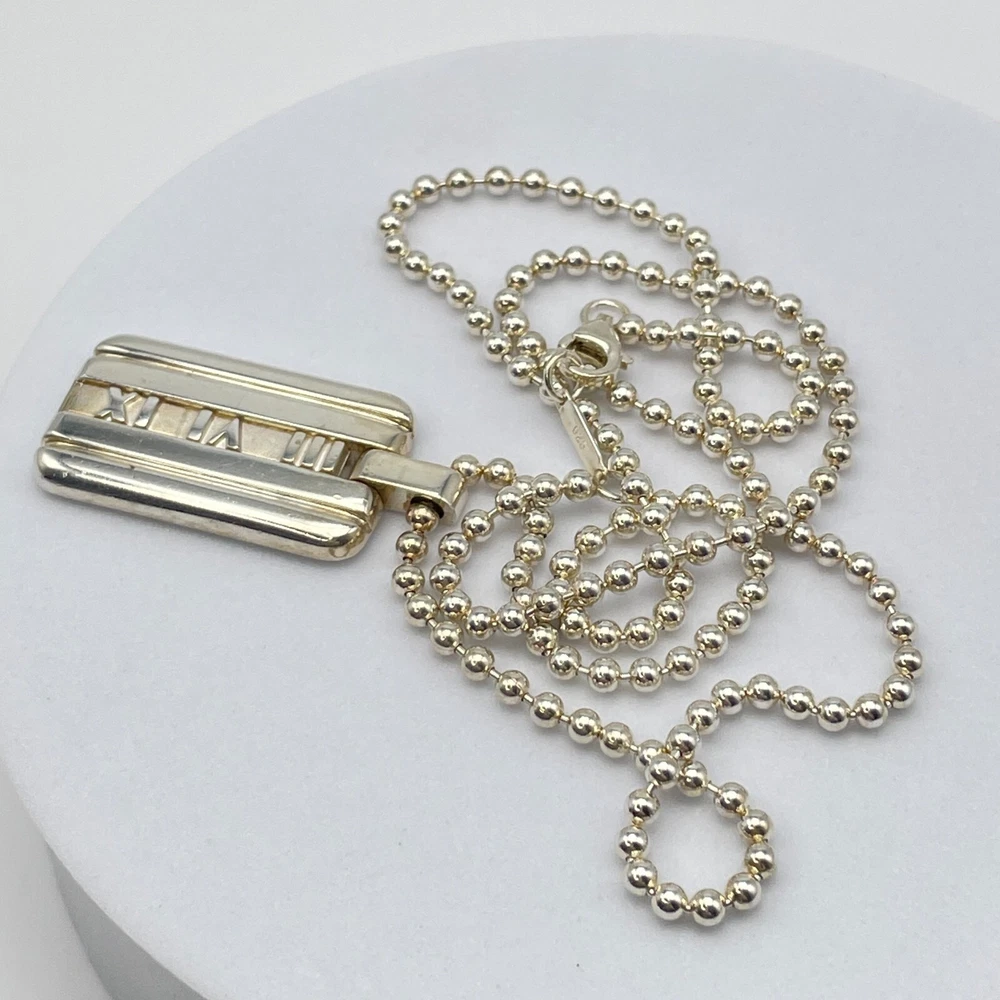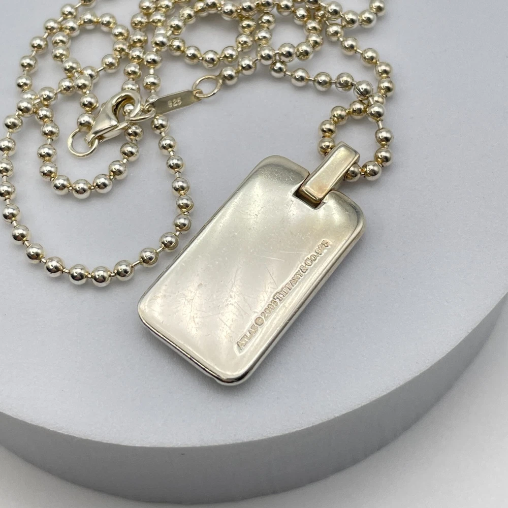 Tiffany & Co. Necklace Atlas Plate Silver 925 Ball Chain With Box #A1114 Description About This Items Brand : Tiffany & Co. Item : Necklace Pendant Shape : Atlas Plate Color : Silver Pendant Top Size : 0.61×1.07in Chain Length : 19in Material : Sterling Silver 925 Appearance Very minimal signs of use. Some minor age-related stains might be present. Please check the photos. Condition Pre-owned Included Items Box All our items are 100% authentic Shipping We always send the item with a tracking number. So please place an order without any concern on delivery. You can always track the delivery status. Shipping is only available to the address registered in eBay. If you want us to send another address, please change your address on eBay and then place an order. Shipping is available from Monday to Friday. Weekends are not available because freight (shipping) companies are closed. We do not mark merchandise values below value or mark items as ?gifts? ? Japan, US and International government regulations prohibit such behavior. If your address is in the remote areas defined by the freight (shipping) company, please pay the additional shipping fees with PayPal. About Importer's Obligation Import duties, taxes, and charges are not included in the item price or shipping cost. These charges are the buyer's responsibility. Please check with your country's customs office to determine what these additional costs will be prior to bidding or buying. Thank you for your understanding.