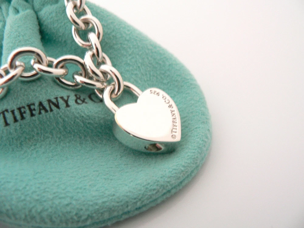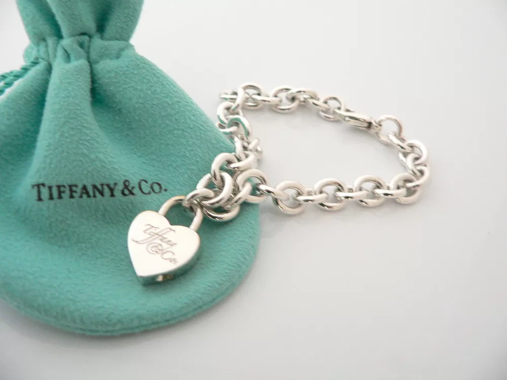 Overview: Offered for sale is a wonderful and gorgeous Tiffany & Co. Sterling Silver Notes Heart Padlock Bracelet. Hanging from its bright Tiffany silver chain is a classic and very pretty Notes Heart Padlock charm! A classic Tiffany piece that any girl will adore! The Heart Padlock charm opens and closes, and thus allows you to wear the charm on a necklace or as part of another charm bracelet! Super cool and versatile piece! It is simple, elegant, and classic all rolled into one piece. Imagine the piece with your professional office attire ... Now imagine it with jeans or weekend wear ... Perfect! It is in excellent condition! It is THE classic Tiffany piece to start or add to your collection. As always, the item is fully hallmarked in two places (middle link of the bracelet/ Heart Padlock Charm) and is guaranteed to be 100% authentic. Everyone needs a signature Tiffany piece! Here is the perfect one just for you. The piece will come with its Tiffany pouch as shown! Perfect and ready for gifting! Wonderful present for yourself or anyone you love! Will surely delight! Particulars: The bracelet is 7.75 inches from end to end. Metal & Hallmarks: Tiffany & Co. / 925 (on Heart padlock charm) T & Co. / 925 (Middle Link of Bracelet) Solid 925 sterling silver Please check out my other unique and interesting Tiffany items on sale.