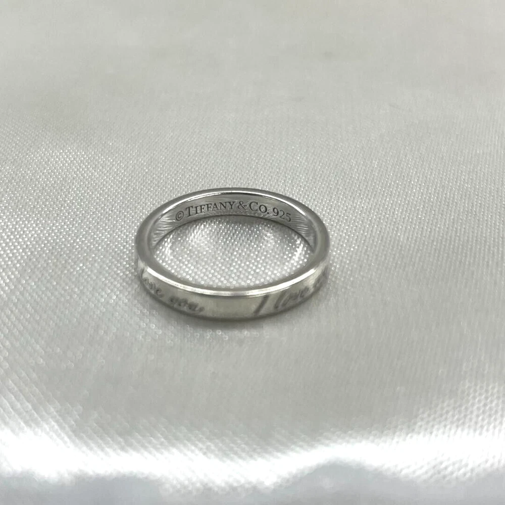 Tiffany & Co. Notes "I LOVE YOU" Narrow Band Ring Size 4 Silver 925 USED W/O Box