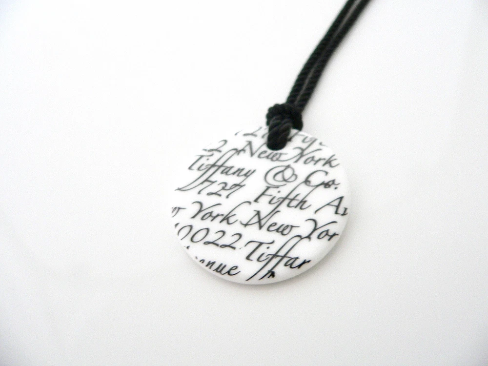 Overview: Have you been looking for an awesome Tiffany statement piece? No need to look any further - you just found it :) Offered for sale is a gorgeous and wonderful Tiffany and Co. White Bone Notes Round Disc Necklace on a Silk Cord. Hanging from its extendable Tiffany silk cord is a gorgeous White Bone Notes Circle pendant! Spectacular statement piece that adds the right touch of Tiffany style to any outfit! Perfect contrast of Black and White! Wonderful necklace that fits a lifestyle on the go -- the necklace can be worn to almost any occasion! It is simple and yet looks extremely elegant. Imagine the piece with your professional office attire ... Now imagine it with jeans or weekend wear ... Perfect in every way! The item is very comfortable to wear, and is in excellent / mint condition. A classic Tiffany piece to start or add to your collection. Both pendant and chain are fully hallmarked and guaranteed to be 100% authentic. Wonderful present for yourself or anyone you love! Will surely delight! Particulars: Size & Measurements: The pendant is 1.25 inches in diameter. The cord length is from 14 extendable to 16 inches (already knotted to the pendant) Metal & Hallmarks: Tiffany & Co. / 925 (circular tag on silk cord) T & Co. / Ireland (on pendant) Solid 925 sterling silver Please check out my other unique and interesting Tiffany items on sale.