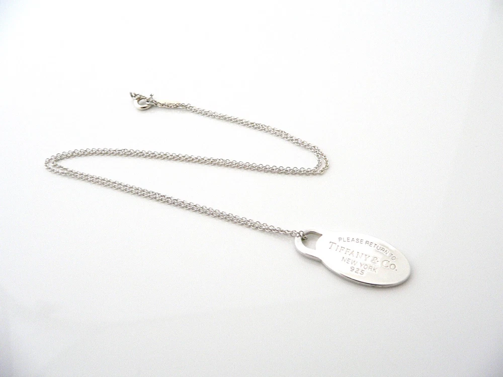 Overview:Offered for sale is a wonderful Tiffany classic. Whether you are just starting your Tiffany collection or are thinking of adding another piece, this one is perfect for you. Tiffany & Co.'s Sterling Silver Oval Tag necklace is a Tiffany classic that will never go out of style. It will most certainly be a piece that you will turn to over and over again, so it is great value for your money! It is a wonderful necklace that fits a lifestyle on the go -- the necklace can be worn to almost any occasion! It is simple, elegant, and classic all rolled into one necklace. Imagine the piece with your professional office attire ... Now imagine it with jeans or weekend wear ... Perfect! As always, the item is fully hallmarked and guaranteed to be 100% authentic.Wonderful present for yourself or anyone you love! Will surely delight! Particulars: Size & Measurements: The necklace is approx. 16.5 inches from end to end. The charm is 0.95 inches. Metal & Hallmarks: Tiffany & Co. / 925 Solid 925 sterling silver Please check out my other unique and interesting Tiffany items on sale.