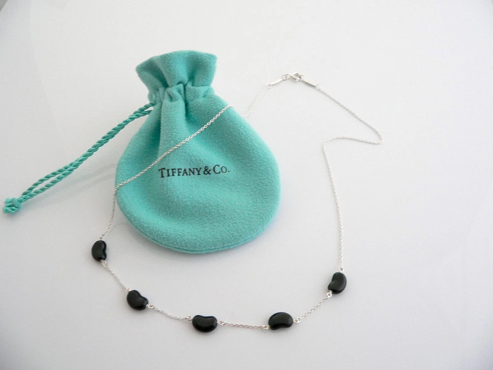 Time to show off your awesome Tiffany necklace! Offered for sale is a wonderful and rare Tiffany classic. Whether you are just starting your Tiffany collection or are thinking of adding another piece, this one is perfect for you. Tiffany & Co. Elsa Peretti’s 5 Five Black Jade Bean necklace is a Tiffany classic that will never go out of style. It will most certainly be a piece that you will turn to over and over again, so it is great value for your money! It is a wonderful necklace that fits a lifestyle on the go -- it can be worn to almost any occasion! It is versatile, elegant, and classic all rolled into one necklace. Imagine the piece with your professional office attire ... Now imagine it with jeans or weekend wear ... Perfect! The item is very comfortable to wear, and is in excellent / mint condition - never been used! No longer in production, it is perfect for the collector! As always, the piece fully hallmarked and guaranteed to be 100% authentic. It will come with its Tiffany pouch as shown! Perfect and ready for gifting! Wonderful present for yourself or someone you love! :) Particulars: Size & Measurements: The necklace is 16.5 inches from end to end. Metal & Hallmarks: Tiffany & Co. / Peretti / 925 / Spain Solid 925 sterling silver and Black Jade Gemstones Please check out my other unique and interesting Tiffany items on sale.