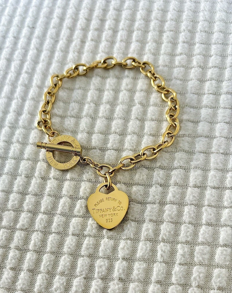 Tiffany & Co. Return To Tiffany Heart Bracelet In gold. Reworked pendant from an old piece of mine. Great condition gold color replacement chain.