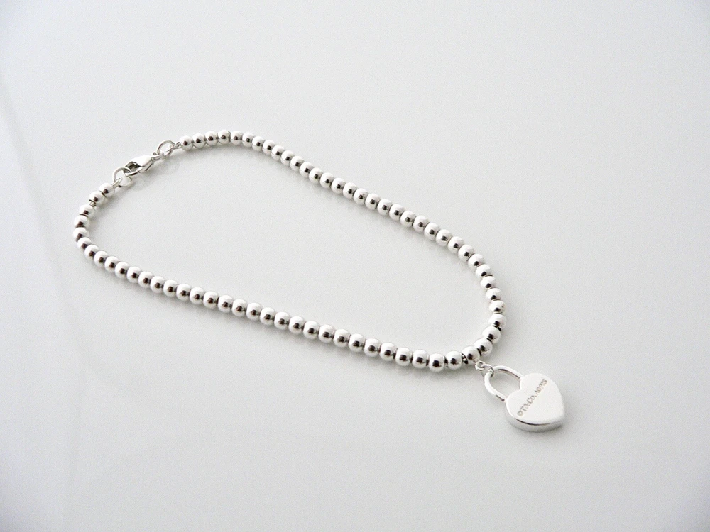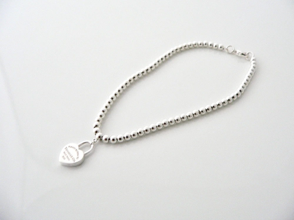 Overview: Offered for sale is a wonderful Tiffany classic - in a rare longer (and very hard to find) length of 7.25 inches. Whether you are just starting your Tiffany collection or are thinking of adding another piece, this one is perfect for you. This Mini Heart Padlock Return to Tiffany & Co. Silver Ball / Bead bracelet is a Tiffany classic that will never go out of style. The piece makes a "Tiffany" statement in its own subtle/simple way. It will most certainly be a piece that you will turn to over and over again, making it great value for your money. It is a wonderful bracelet that fits a lifestyle on the go -- the piece can be worn to almost any occasion! It is simple, elegant, and classic all rolled into one. Imagine the piece with your professional office attire ... Now imagine it with jeans or weekend wear ... Very cool in every way! As always, the item is fully hallmarked and guaranteed to be 100% authentic. Wonderful present for yourself or anyone you love! Will surely delight! Particulars: Size & Measurements: The bracelet is approx. 7.25 inches from end to end. Rare and hard to find longer length! Metal & Hallmarks: Return to Tiffany & Co. / 925 Solid 925 sterling silver Please check out my other unique and interesting Tiffany items on sale.