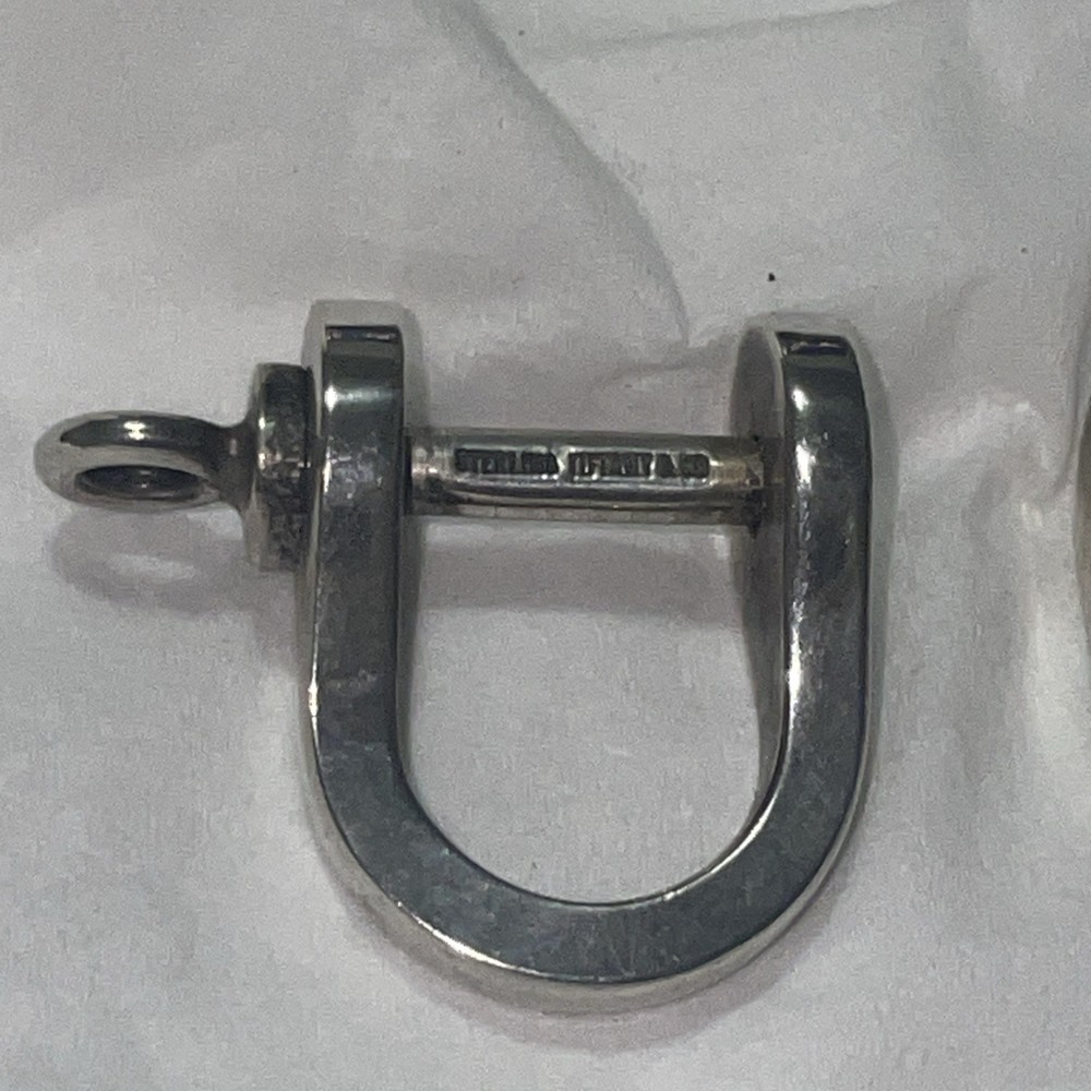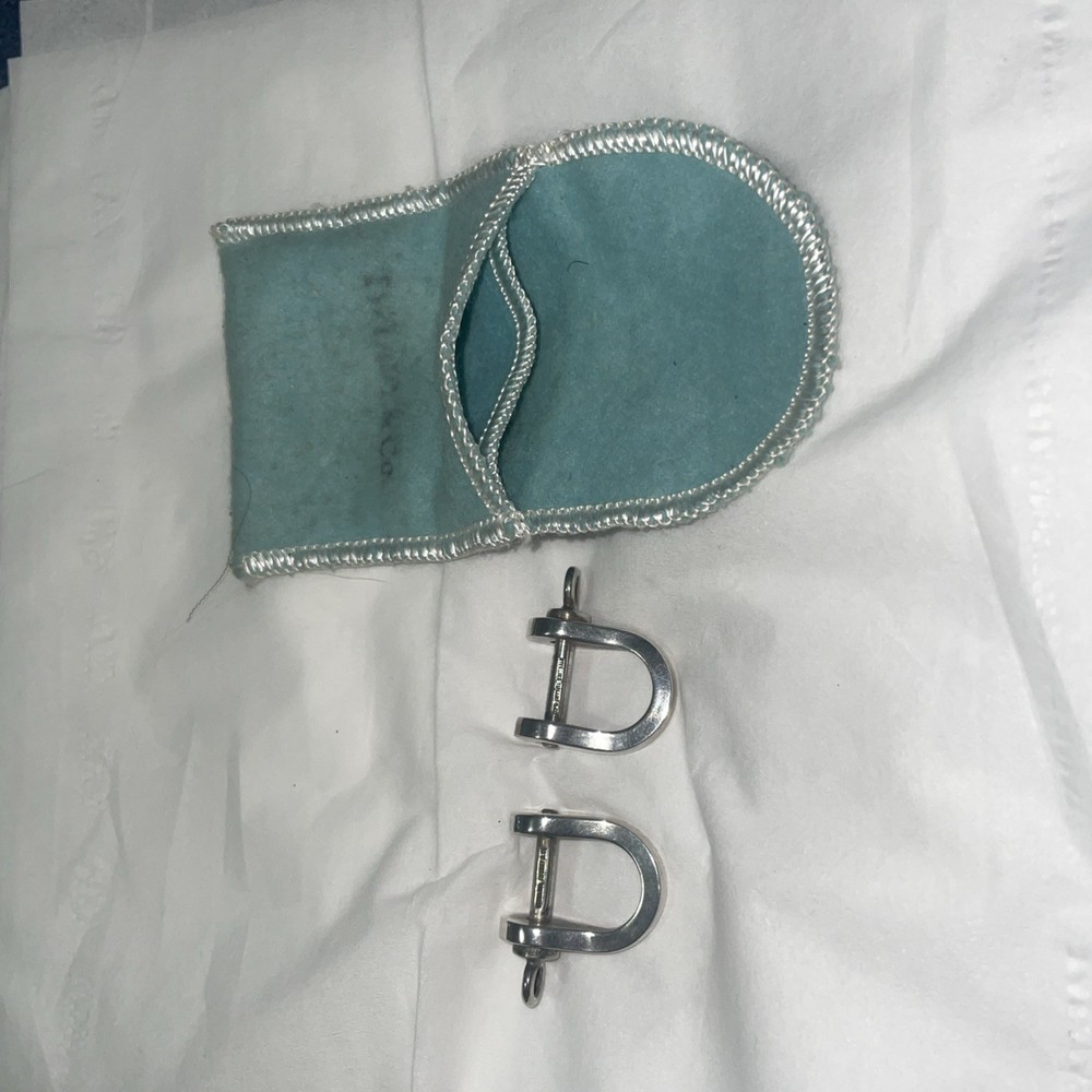 The Tiffany & Co Shackle Cufflinks are a rare and luxurious accessory for men, made from high-quality sterling silver with a metal purity of 925. These cufflinks feature intricate engraving and are designed to be worn with formal attire. Made in the United States, they come in their original pouch, making them a perfect addition to any sophisticated man's jewelry collection. Ideal for adding a touch of elegance and prestige to any outfit, these cufflinks are a timeless and stylish choice for the modern gentleman. Included is the ORIGINAL pouch!