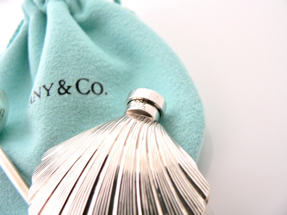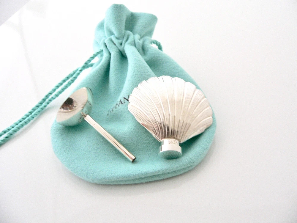 Overview: Offered for sale is a beautiful vintage Tiffany & Co. Sterling Silver Shell perfume bottle / dabber / funnel set. Super cool and unique Shell shaped perfume container. Definitely an amazing treasure to find! Very pretty and unique piece - you can use it as a perfume container, or just as nice piece to display since it is such a cool piece! It is almost like a work of art! Includes a Tiffany & Co. Sterling Silver funnel (of course :)) for easy filling of the perfume bottle! No longer in production, you will be one of the few that will have the fortune of owning this piece. Perfect for the Tiffany collector. As always, the item is fully hallmarked and guaranteed to be 100% authentic. It will come with its Tiffany pouch as shown! Wonderful present for yourself or anyone you love! Will surely delight! Particulars: Size & Measurements: The Shell Perfume Bottle is approx. 1.5 inches. Metal & Hallmarks: T & Co. / 925 (on Shell Perfume Bottle) Tiffany & Co / 925 (on Funnel) Solid 925 sterling silver Please check out my other unique and interesting Tiffany items on sale.
