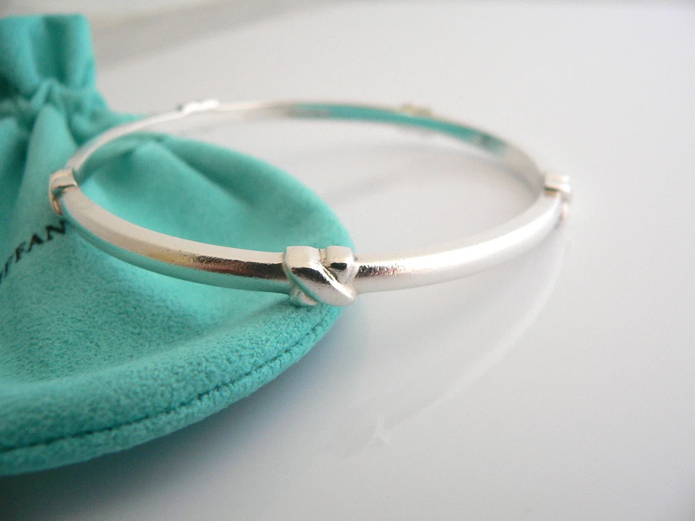 Overview: Everyone needs a signature Tiffany piece! Here is the perfect one just for you. Offered for sale is a wonderful and mint Tiffany & Co. Sterling Silver Signature Bangle. The piece is crafted from bright and substantial Tiffany silver, and yet retains a feminine and delicate feel to it. It is a wonderful bracelet that fits a lifestyle on the go -- can be worn to almost any occasion! It is simple, elegant, and classic all rolled into one item. Imagine the piece with your professional office attire ... Now imagine it with jeans or weekend wear ... Perfect way to add your Tiffany style to any outfit! The bangle is very comfortable to wear, and is in good condition. It is THE classic Tiffany piece to start or add to your collection. As always, the item is fully hallmarked and guaranteed to be 100% authentic. Wonderful present for yourself or anyone you love! Will surely delight! It will come with its Tiffany pouch as shown! Perfect and ready for gifting! The Blue / Pink / Black Enamel Signature Bangles are also available in a separate listing. Please have a look - The bangles look wonderful together! :) Particulars: Size & Measurements: The bangle's diameter is 2.55 inches. Metal & Hallmarks: Tiffany & Co. / 925 Solid 925 sterling silver Please check out my other unique and interesting Tiffany items on sale.