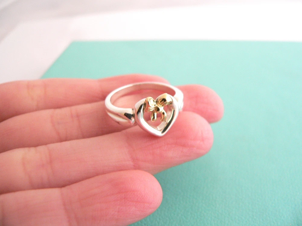 Overview: Offered for sale is a wonderful and gorgeous Tiffany and Co. Silver and 18K Gold Heart Ribbon / Bow Ring. The ring is made from solid Tiffany silver and 18K gold, allowing you to combine the piece with almost any other piece of jewelry you already own. The style is classic Tiffany, making it a piece that you will most certainly use over and over again. Great piece to wear to work, or for just going to dinner with friends in jeans or a pretty dress. A great Tiffany piece to start or add to your collection. It is in excellent condition! The item is fully hallmarked and is guaranteed to be 100% authentic. Wonderful present for yourself or anyone you love! Will surely delight! Particulars: Size & Measurements: The ring is a size 6 Metal & Hallmarks: 1991 / Tiffany & Co. / 925 / 750 Solid 925 sterling silver and 18K solid gold Please check out my other unique and interesting Tiffany items on sale.