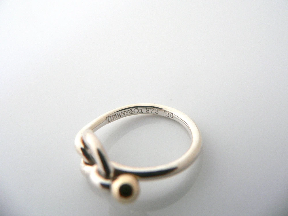 Tiffany & Co Silver 18K Gold Love Knot Ring Band Sz 5.75 Gift love Statement