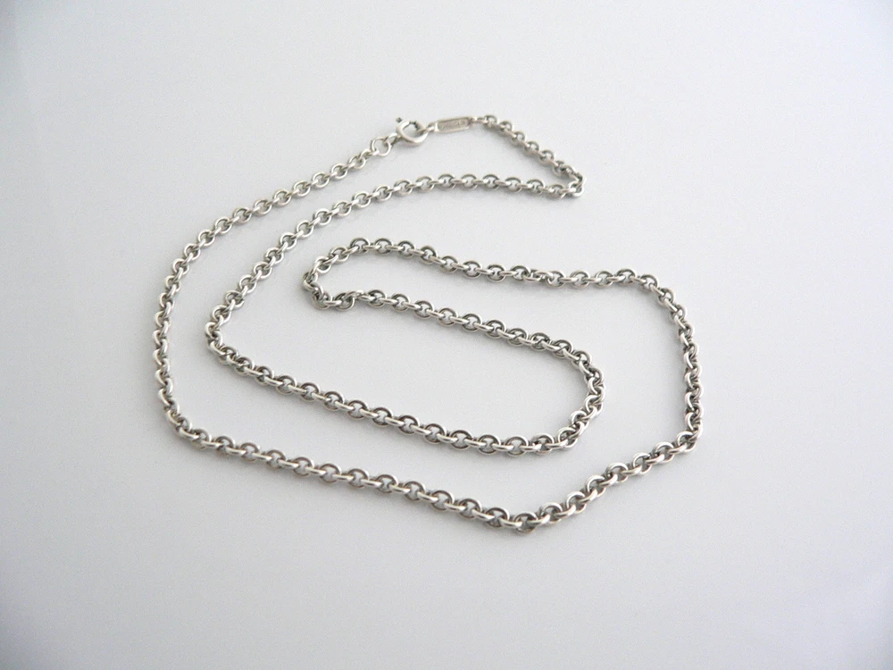 Overview: If you have been looking for a Tiffany chain for a pendant or charm you already own, here's the perfect one for you! Offered for sale is a Tiffany & Co. silver 2mm curb 18.25 inch chain. Looks great worn alone, but would be a perfect complement to any charms or pendants you already own! The item is very comfortable to wear, and is in excellent condition. As always, the item is fully hallmarked and guaranteed to be 100% authentic. Wonderful present for yourself or anyone you love! Will surely delight! Particulars: Size & Measurements: The chain is 18 inches from end to end. Metal & Hallmarks: Tiffany & Co. / 925 Solid 925 sterling silver Please check out my other unique and interesting Tiffany items on sale.