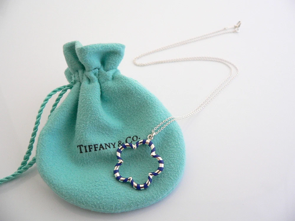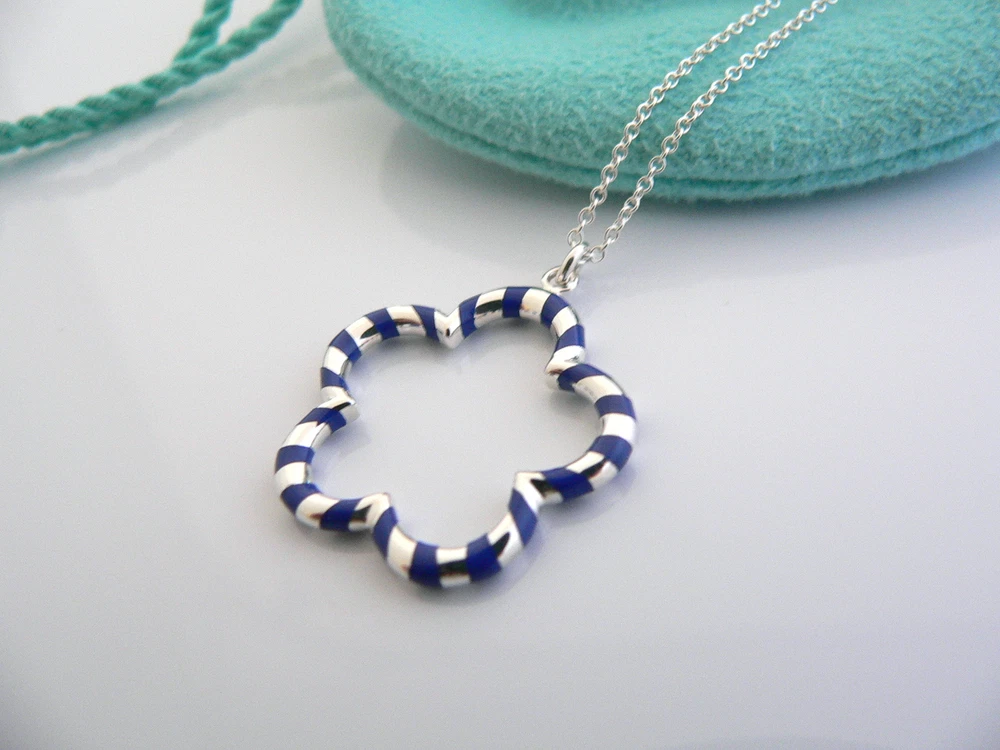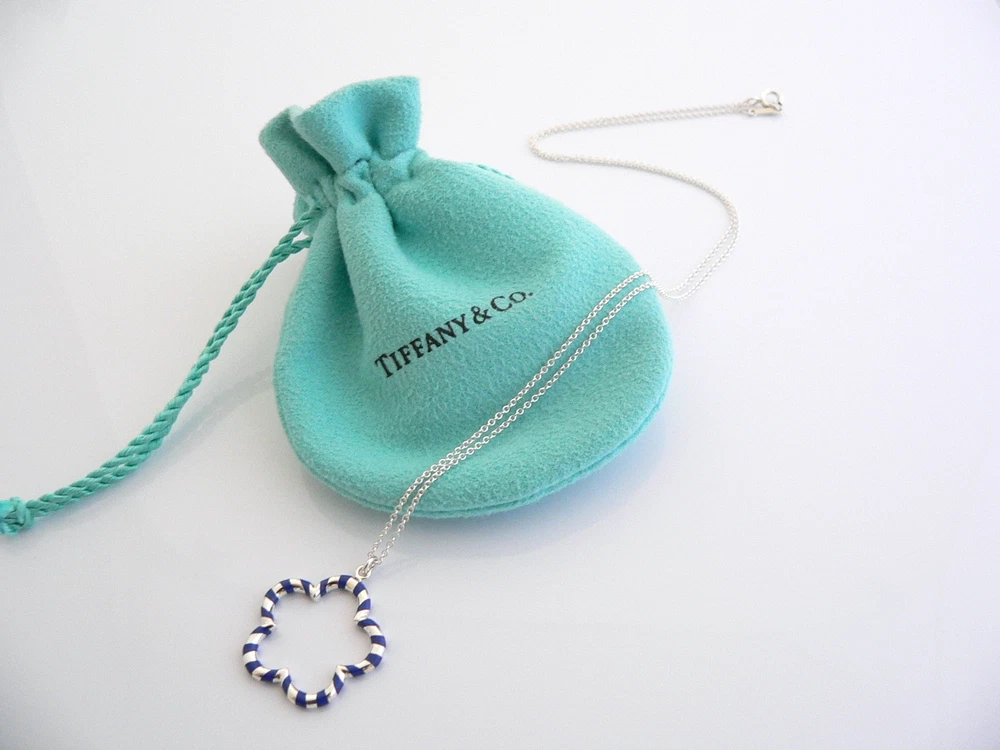 Overview: Everyone needs a signature Tiffany piece! Here is the perfect one just for you - and it is quite a rare and hard to find piece. Offered for sale is a wonderful Tiffany & Co. Picasso Silver & Blue Enamel Striped Flower necklace. The piece is crafted from bright Tiffany silver, yet retains its feminine and delicate feel. Hanging from its sterling silver Tiffany curb chain is a very pretty and unique Flower pendant/charm. Just gorgeous! It is a wonderful necklace that fits a lifestyle on the go, and can be worn to almost any occasion. The piece is simple, elegant, and classic all rolled into one. Imagine it with your professional office attire ... Now imagine it with jeans or weekend wear ... Perfect! The necklace is very comfortable to wear, and is in excellent condition. It is one of THE classic Tiffany piece to start or add to your collection. As always, the item is fully hallmarked and guaranteed to be 100% authentic. It will come with its Tiffany pouch as shown! Perfect and ready for gifting! Wonderful present for yourself or anyone you love! Will surely delight! Particulars: Size & Measurements: The necklace is 18.1 inches from end to end. The charm is approx. 0.95 inches. Metal & Hallmarks: T & Co. / Paloma Picasso / 925 Solid 925 sterling silver Please check out my other unique and interesting Tiffany items on sale.