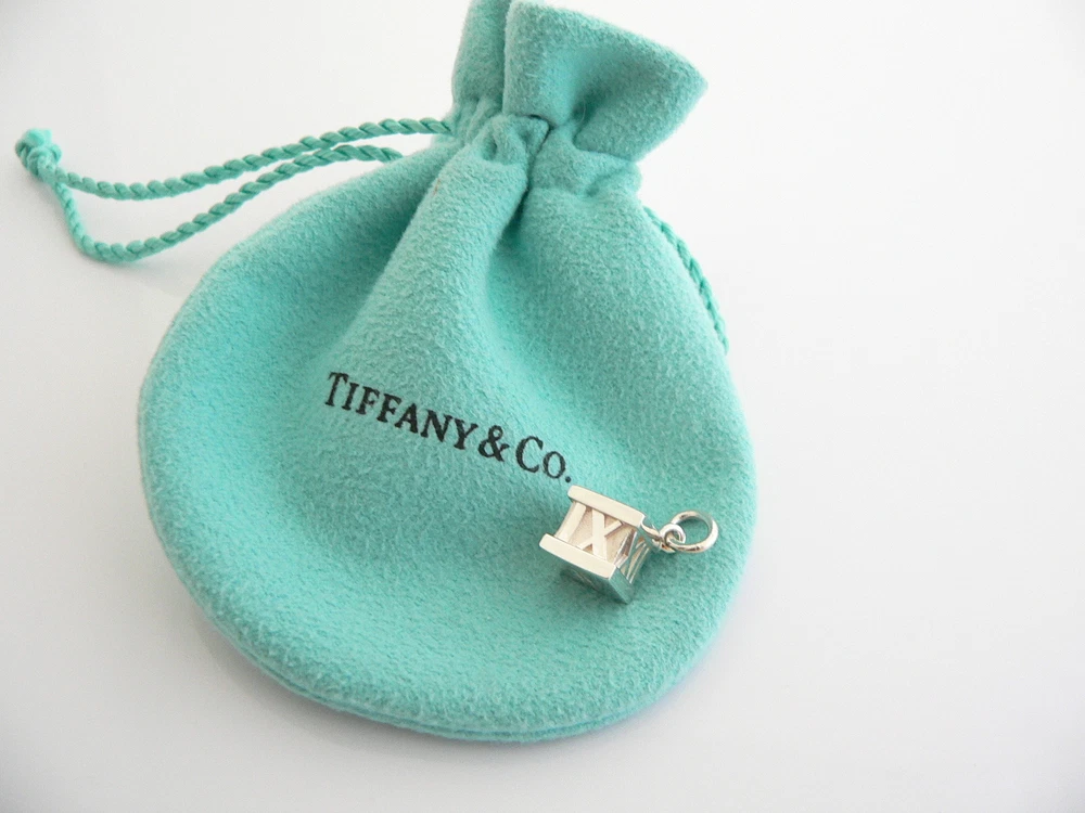 Tiffany & Co Silver Diamond Atlas Cube Charm Pendant Excellent Love Gift Pouch