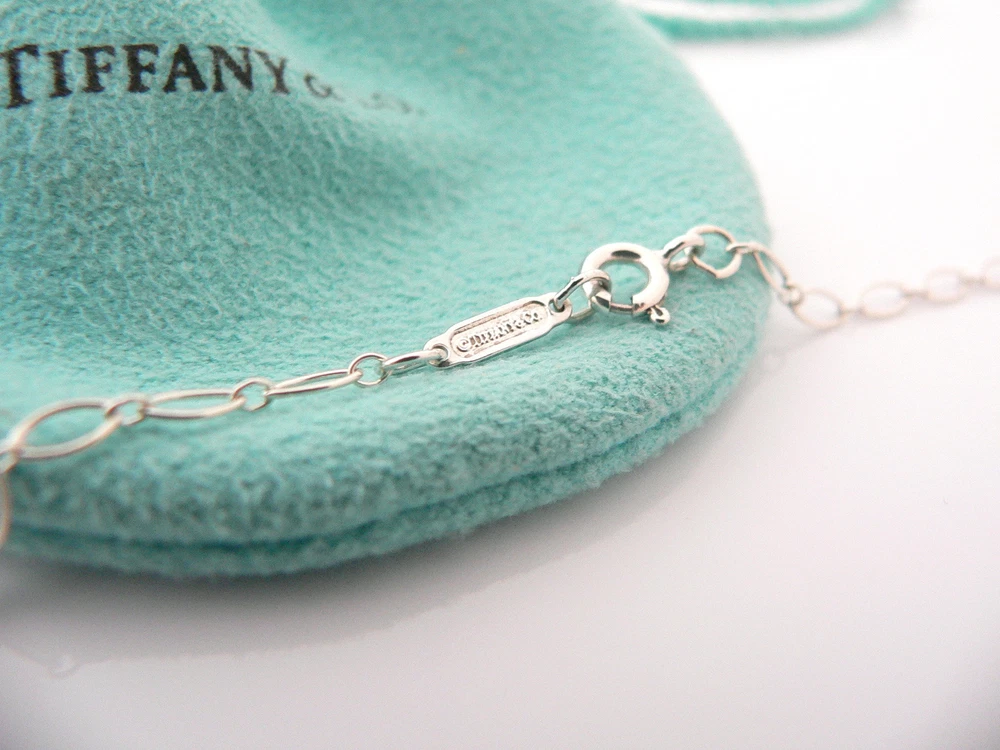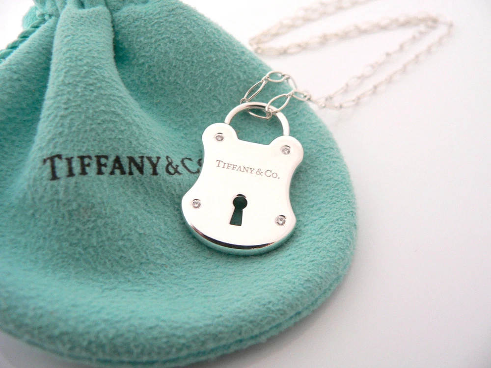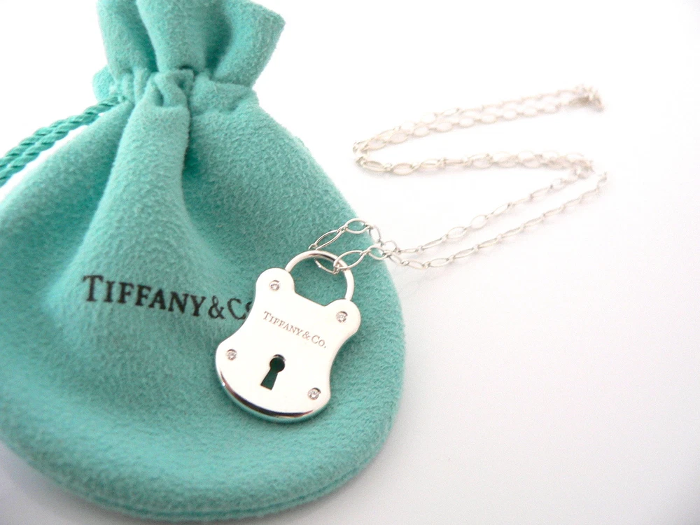 Overview: Here is a gift that she will surely adore! Offered for sale is a wonderful Tiffany & Co. Sterling Silver & Diamonds Rectangle Locks charm necklace. Hanging from its gorgeous Tiffany & Co Oval Link chain is a fabulous and very pretty Rectangle Locks charm accented with 4 Super Sparkly Diamonds! I am 100% sure that this is one necklace that will be used a lot! Great conversation piece as well - in case you run out of small talk at a cocktail party. The item is a wonderful piece that is no longer in production - and is thus perfect for the collector. The item is very comfortable to wear, and is in excellent condition. No longer in production, it is perfect for the collector! Perfect little present or treat for anyone! It is fully hallmarked on both pendant and chain. As always, it is guaranteed to be 100% authentic. The necklace will come with its Tiffany pouch as shown! Perfect and ready for gifting! Wonderful present for yourself or anyone you love! Will surely delight! Particulars: The necklace is 16 inches from end to end. The Diamond Locks charm is approx 1.1 inches long, and is 0.75 inches at its widest ends. Metal & Hallmarks: Tiffany & Co. / 925 (on both Locks charm and chain clasp) Solid 925 Sterling Silver and 4 Sparkling Diamonds Please check out my other unique and interesting Tiffany items on sale.