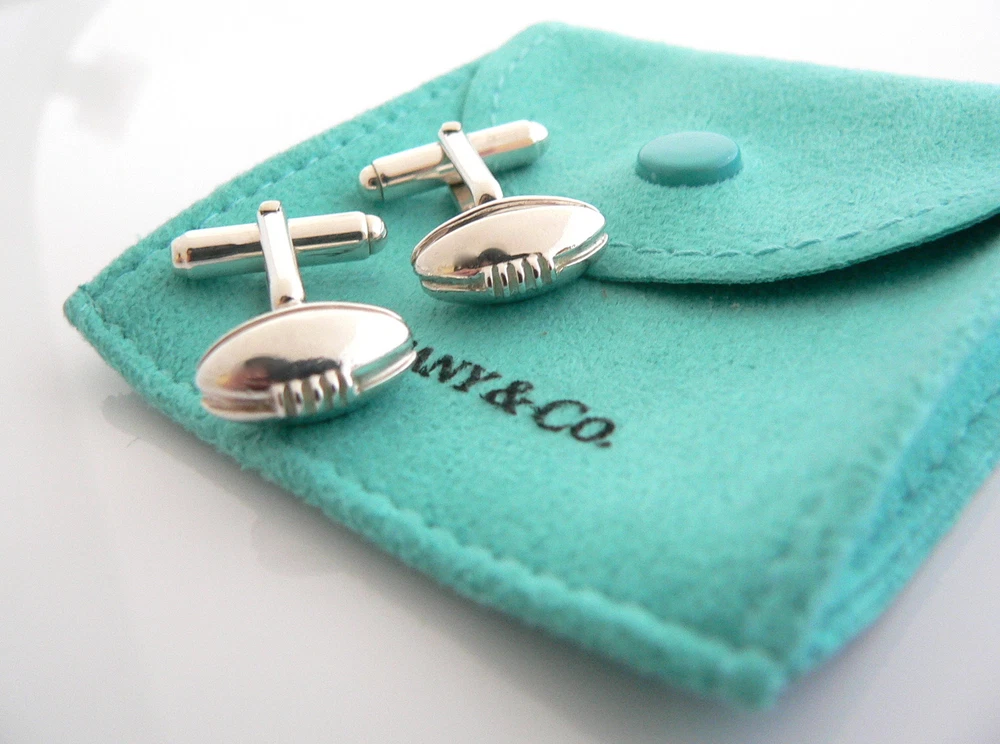 Offered for sale is a rare and unique pair of Tiffany and Co. Sterling Silver Football Cuff Links. Perfect for the football player / lover / aficionado! The detailing of the piece is just amazing. It will certainly be something that will be used on a daily basis. Just a little something to put a smile on your face when you look down on your sleeve! :) It is no longer in production, making it a great piece for the collector. Perfect surprise for that someone special! The piece is fully hallmarked and is guaranteed to be 100% authentic. Wonderful present for yourself or anyone you love! Will surely delight! Particulars: Weight: 13.4 grams Metal & Hallmarks: Tiffany & Co. / 925 Solid 925 sterling silver Please check out my other unique and interesting Tiffany items on sale.