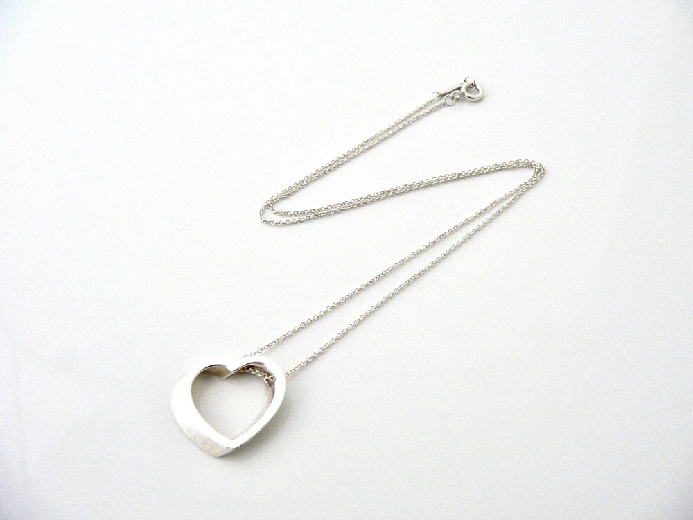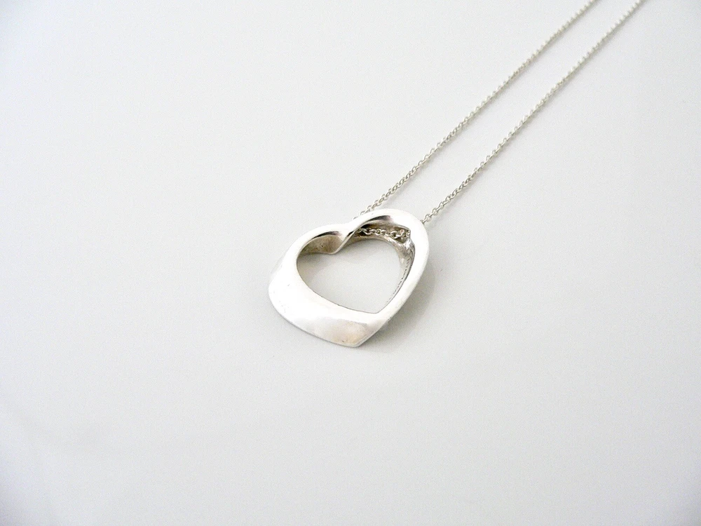 Tiffany & Co Silver Heart Necklace Pendant Charm Chain Modern Geometric Gift