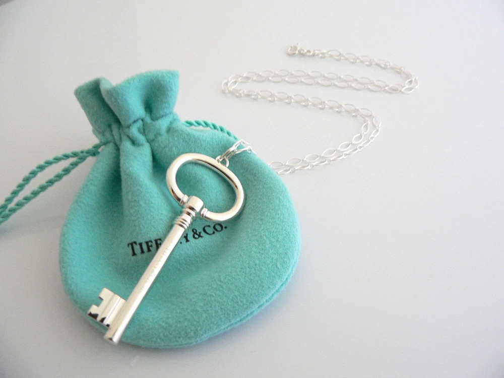 Overview: Offered for sale is a fantastic and very pretty Tiffany and Co. Sterling Silver Extra Large Oval Key Necklace. Wonderful necklace that fits a lifestyle on the go -- the necklace can be worn to almost any occasion! Hanging from its beautiful Tiffany & Co. 20 inch sterling silver oval chain is a gorgeous Oval Key pendant - awesome statement piece! It is simple and yet looks extremely elegant. Perfect way to say "Here's the key to my heart :)" without ever having to say a word - believe me, she will know! :) Imagine the piece with your professional office attire ... Now imagine it with jeans or weekend wear ... Perfect in every way! The item is very comfortable to wear, and is in very good condition. A classic Tiffany piece to start or add to your collection. Both key pendant and chain are fully hallmarked and guaranteed to be 100% authentic. It will come with its Tiffany pouch as shown! Perfect and ready for gifting! Wonderful present for yourself or anyone you love! Will surely delight! Particulars: Size & Measurements: The key pendant is approx. 2.5 inches. The oval chain is 24 inches long. Metal & Hallmarks: Tiffany & Co. / 925 (on key pendant and chain) Solid 925 sterling silver Please check out my other unique and interesting Tiffany items on sale.