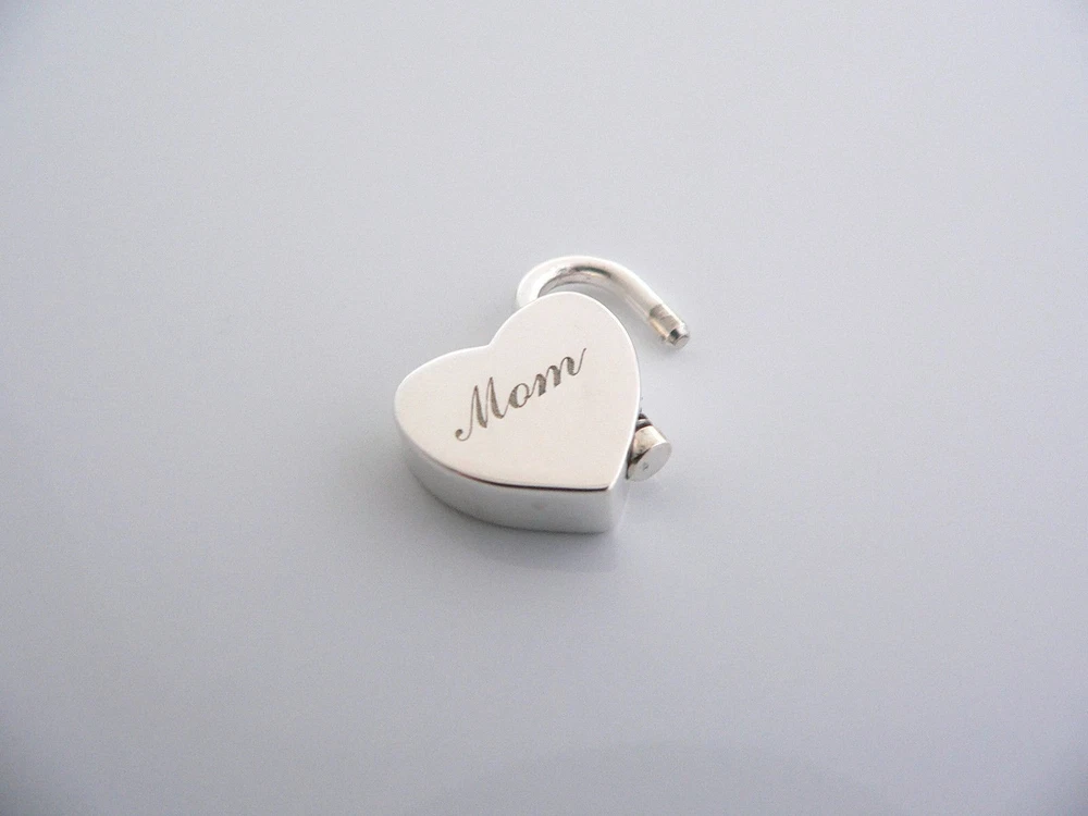 Overview: Offered for sale is a super versatile Tiffany & Co. Sterling Silver "Mom" Heart Padlock pendant that is perfect for any necklace or charm bracelet! The padlock opens and closes so it is super versatile and can be taken on or off any bracelet or necklace. The piece is perfect worn alone or as part of a charm collection. The pendant is simple, elegant, and classic all rolled into one item. It is a wonderful Tiffany piece to start or add to your collection. As always, the item is hallmarked and guaranteed to be 100% authentic. Wonderful present for yourself or anyone you love! Will surely delight! Particulars: Size & Measurements: The Heart charm is approx. 1 inch long Metal & Hallmarks: Tiffany & Co / 925 Solid 925 sterling silver Please check out my other unique and interesting Tiffany items on sale.