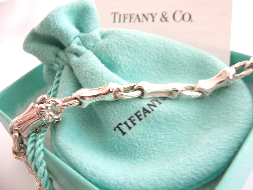 Overview: Offered for sale is a gorgeous and rare Tiffany & Co Sterling Silver Bamboo Link (19 Inch) chain necklace. Made from solid and bright Tiffany silver, yet maintains its delicate and feminine feel! Looks and feels wonderful, I am 100% positive that you will want to use it over and over again. Your friends will be fascinated by this gorgeous piece – it is almost like a work of art right on your neck! The look of the piece is simple, classic, and very elegant. The necklace is super elegant and chic; it works with pretty much anything you put on … and adds a touch of Tiffany style and pizazz to it! A perfect and rare Tiffany piece to start or add to your collection. The necklace is fully hallmarked and guaranteed to be 100% authentic. It will come with its Tiffany pouch, box, and sterling care card as shown! Perfect and ready for gifting! Wonderful present for yourself or anyone you love! Will surely delight! Particulars: Size & Measurements: The necklace is 19 inches long. Metal & Hallmarks: 1996 / T & Co. / 925 Solid 925 sterling silver Please check out my other unique and interesting Tiffany items on sale.